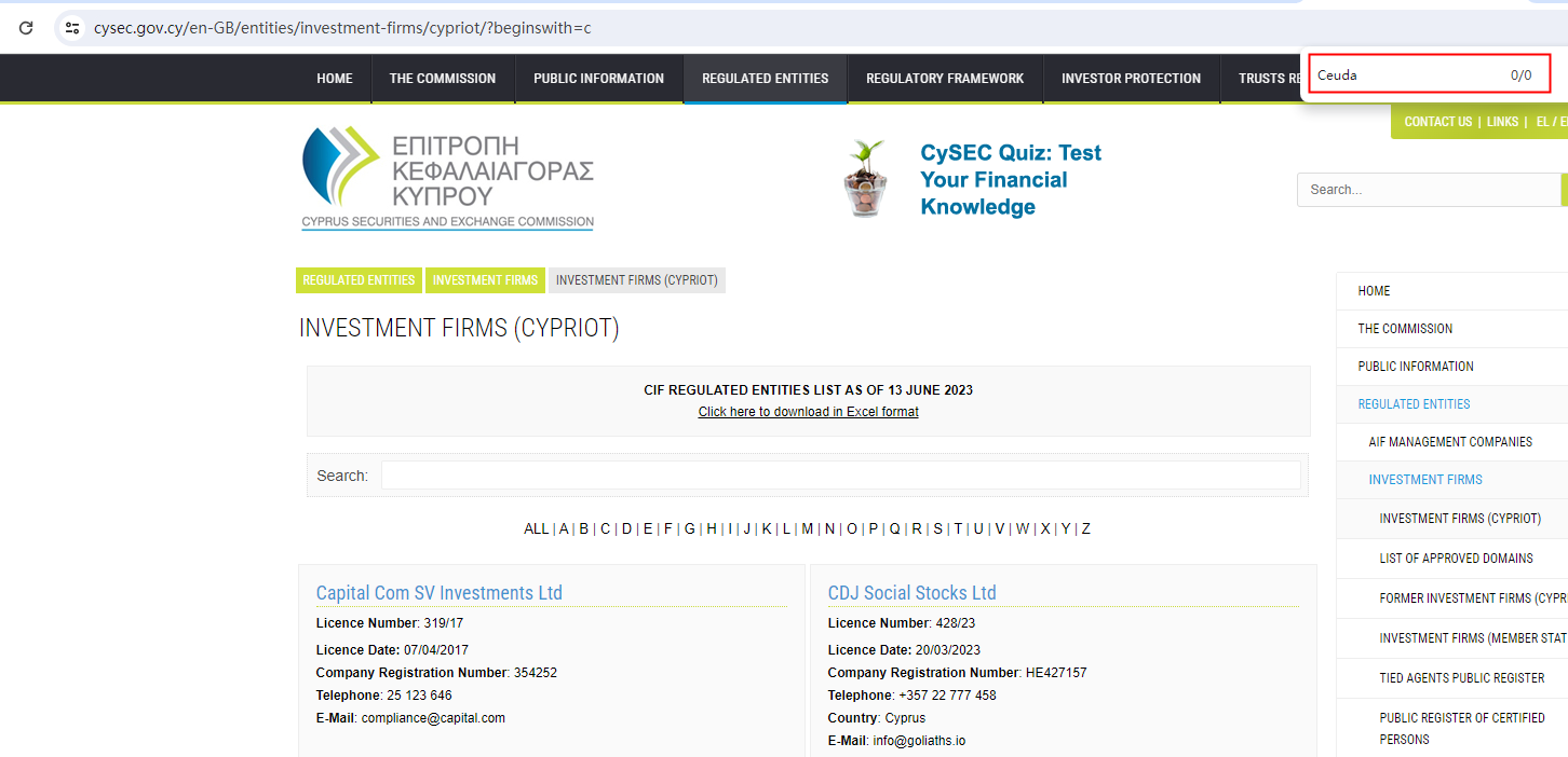 FXAlta mentioned Ceuda Investments Ltd claiming to be registered in Cyprus. However, our investigation suggests that Ceuda Investments Ltd are not in the registries of the Cyprus Securities and Exchange Commission (CySEC). As such, FXAlta is misrepresenting regulatory status to deceive unsuspecting investors.