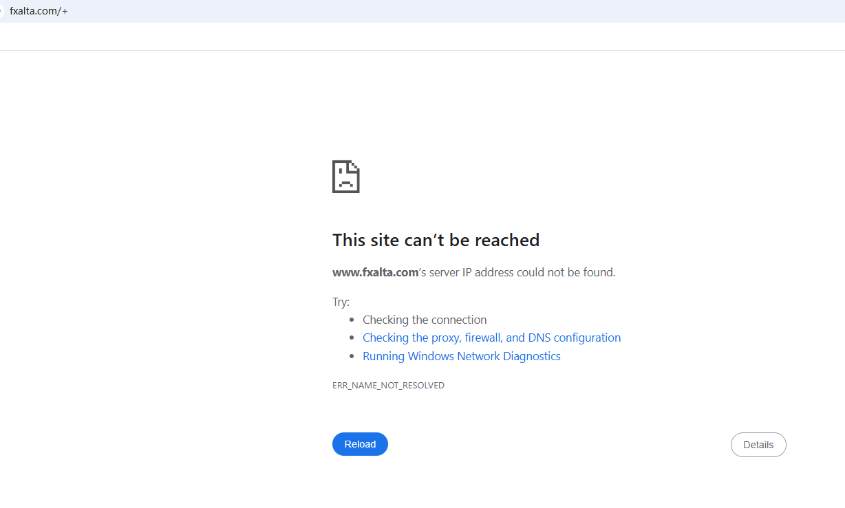 BrokersView found that the domains "https://www.fxalta.com/; https://webtrader.fx-alta.com/; https://mobtrader.fx-alta.com/" are currently inaccessible. This is widely regarded as a significant red flag, as the suspension of a broker's website often points to underlying regulatory or operational issues.