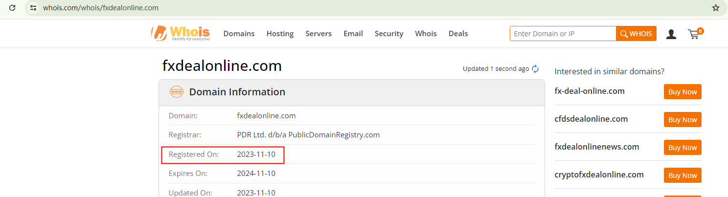 It's important to highlight that the domain name fxdealonline.com was first registered in November 2023. This contradicts the company's claim of being established in 2018, a discrepancy often seen as a red flag for potential scams.