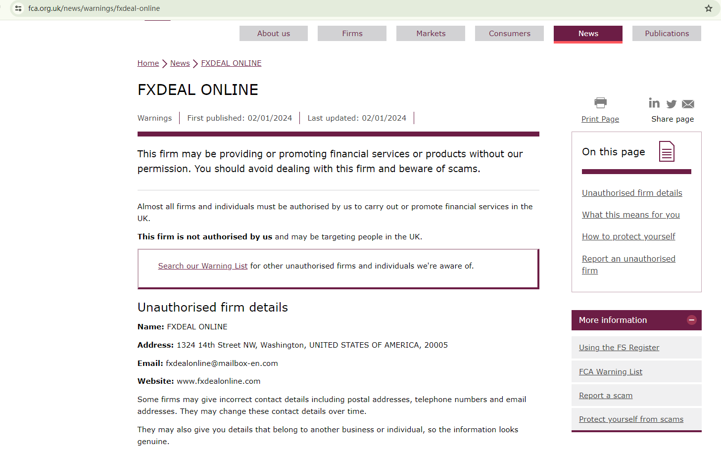 Furthermore, the UK's financial regulator, the Financial Conduct Authority (FCA), has issued a warning against FXDEAL ONLINE, identifying it as an unauthorized firm operating in the UK.