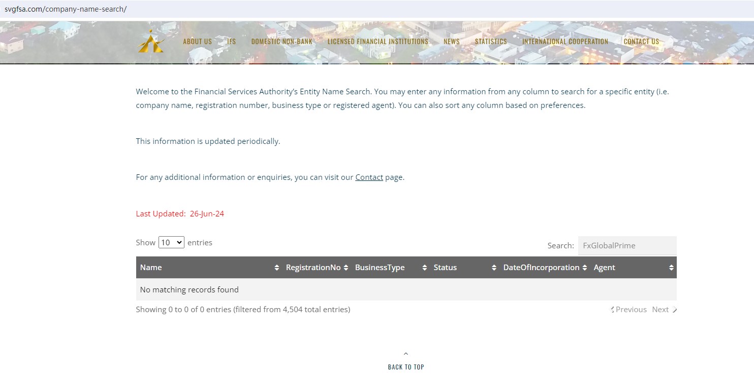 Upon investigation, we found that FxGlobalPrime is not regulated by the Australian Securities and Investment Commission (ASIC), also has no the business registration with the Financial Services Authority in St. Vincent and the Grenadines(SVG FSA) , an offshore authority that doesn't license financial derivative trading brokerage activities.