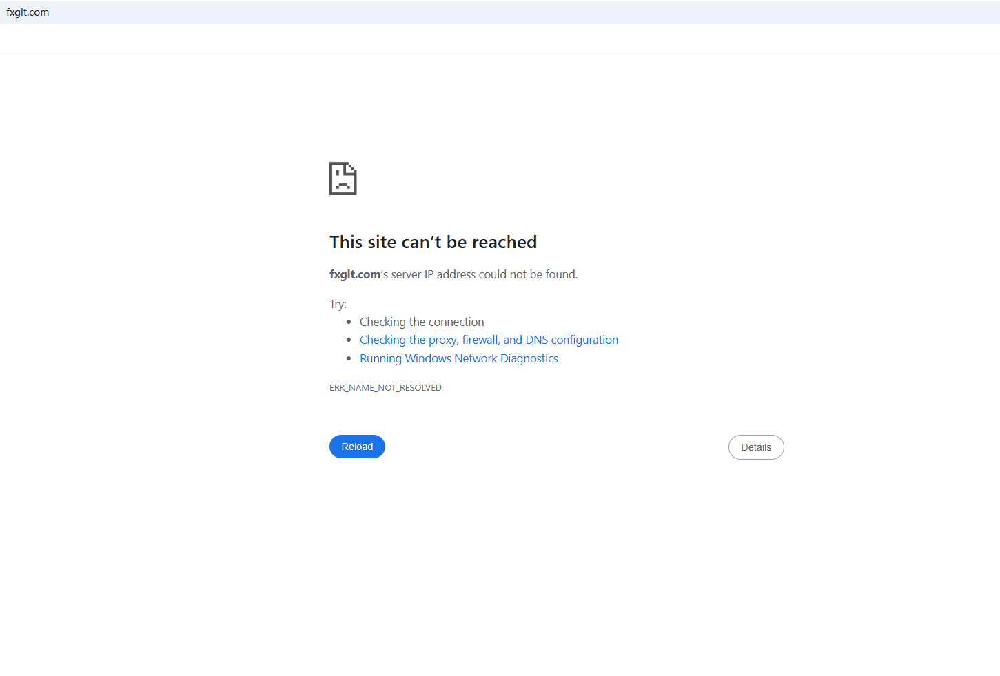 BrokersView found that the domain "fxglt.com" is currently inaccessible. This is widely regarded as a significant red flag, as the suspension of a broker's website often points to underlying regulatory or operational issues.