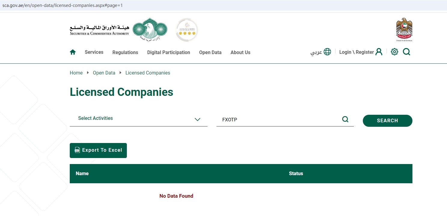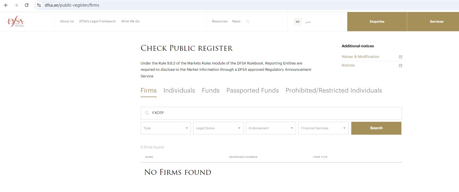 However, FXOTP is also not authorized and regulated by the DuBai Financial Services Authority (DFSA), the Central Bank of U.A.E.(CBUAE), the Securities and Commodities Authority(SCA) in the United Arab Emirates.