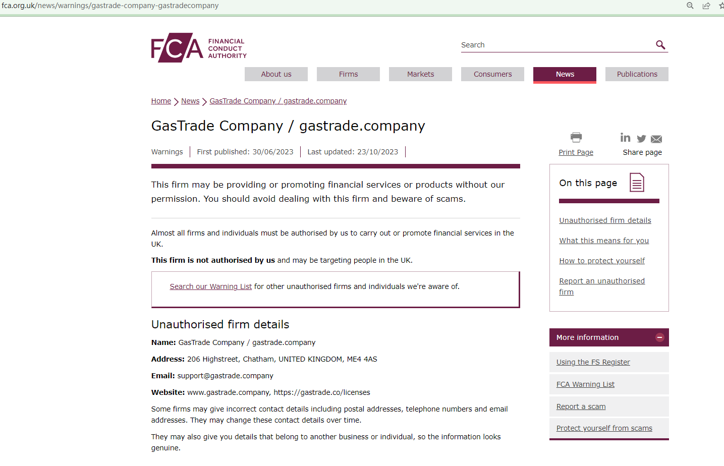 As GasTrade Company continues its unlicensed activities and has created a new website address to solicit potential investors, the Financial Conduct Authority (FCA), in an effort to keep traders informed about this unauthorized firm, updated its warning by adding more details about the platform. Please be aware of the risks involved and stay away from it. https://www.fca.org.uk/news/warnings/gastrade-company-gastradecompany