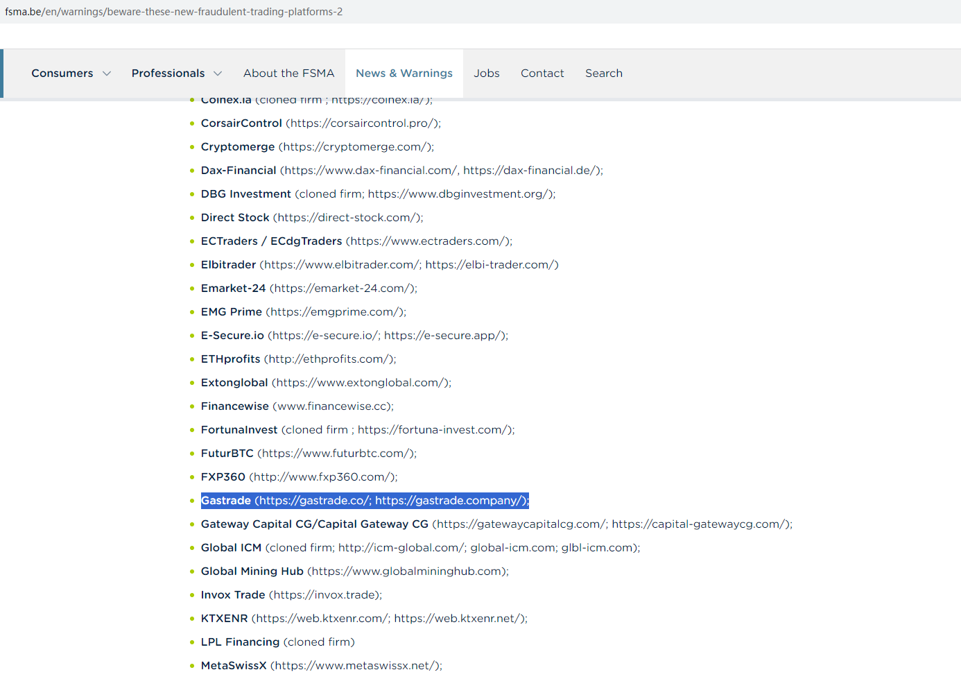 On November 30, 2023, the Belgian Financial Services and Markets Authority (FSMA) added Gastrade to its warning list as a fraudulent trading platform operating in the Belgian market. https://www.fsma.be/en/warnings/beware-these-new-fraudulent-trading-platforms-2