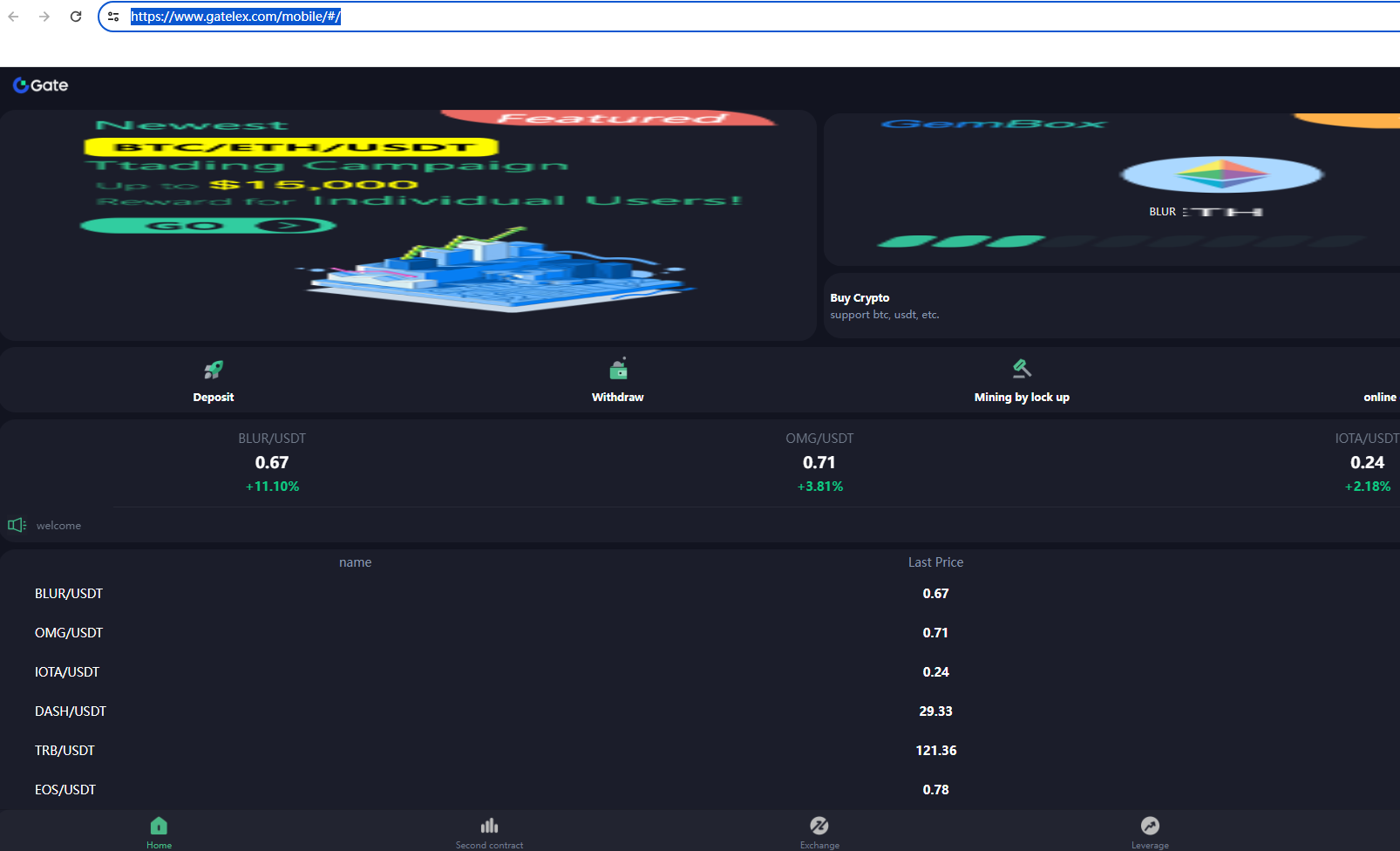 BrokersView found that the domain "https://www.gatelex.com/mobile/#/" is currently inaccessible. This is widely regarded as a significant red flag, as the suspension of a broker's website often points to underlying regulatory or operational issues.