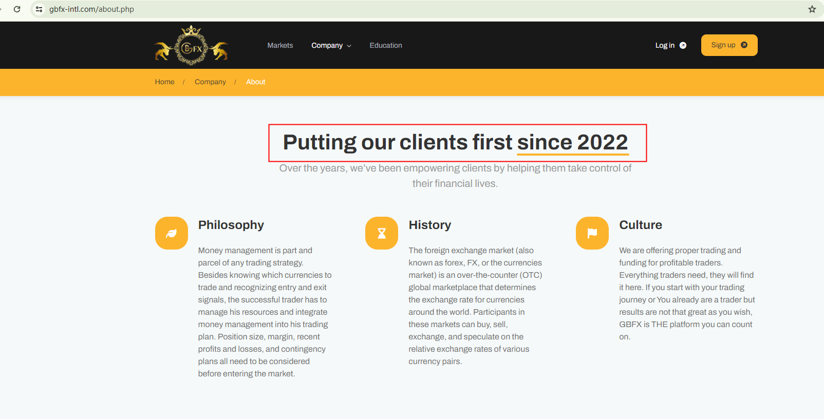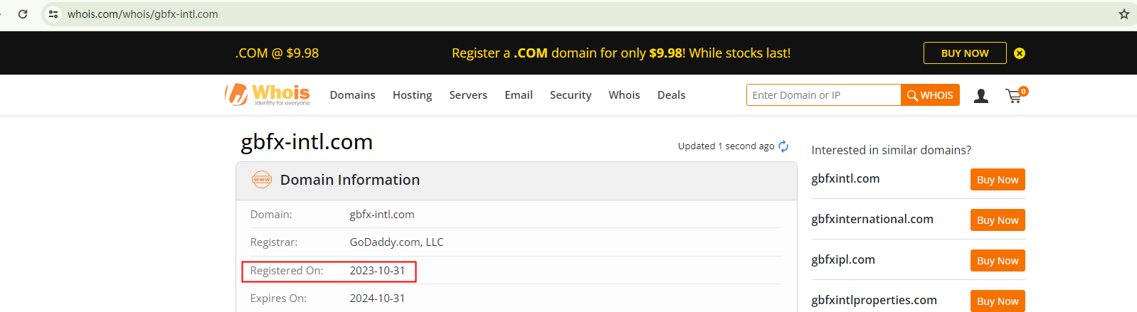 Moreover, the domain name gbfx-intl.com was only registered in October 2023, contradicting the company's claim of operating since 2022. Such inconsistencies often serve as red flags.