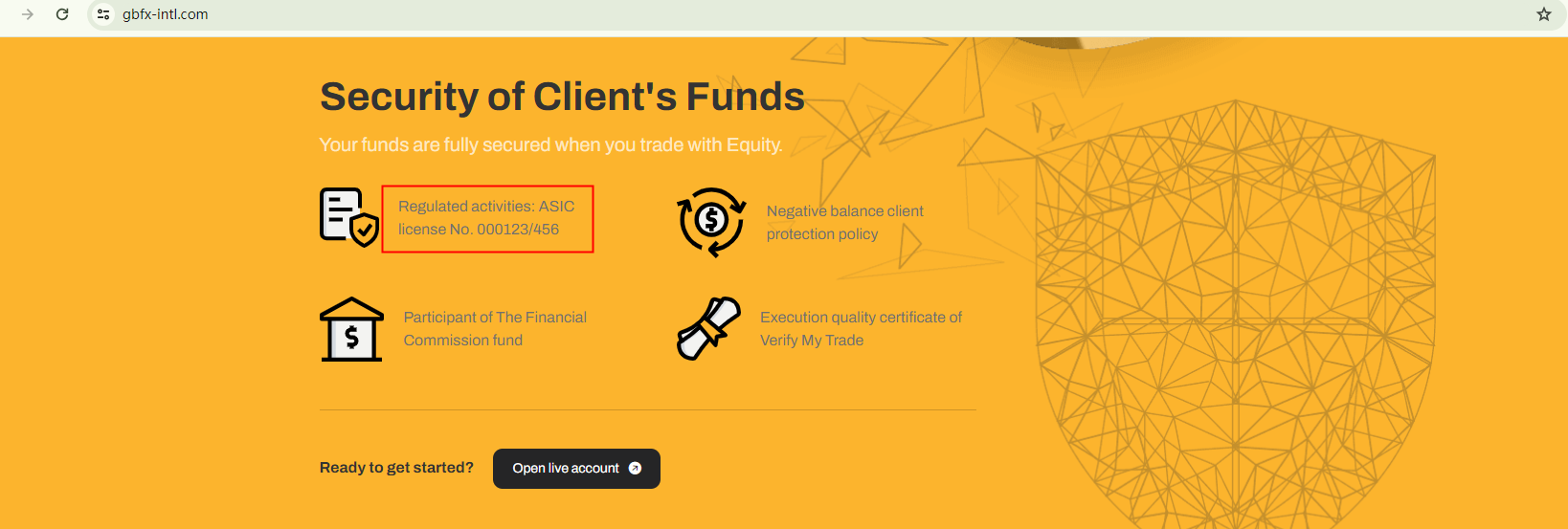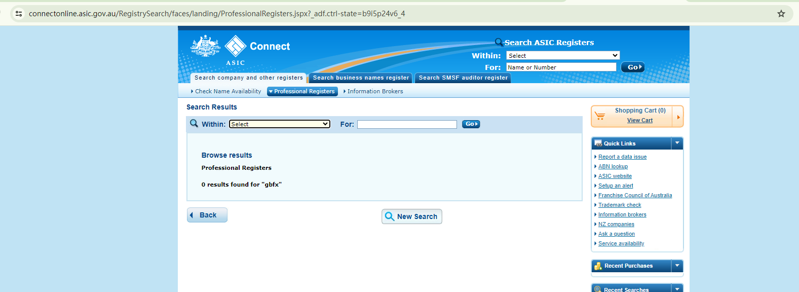 GBFX International purports to hold a license from the Australian Securities and Investments Commission (ASIC) under the number 000123/456. However, this number does not conform to the ASIC's standard format, which is cause for concern. Furthermore, our search on the ASIC register indicates that the company is not authorized by the Australian financial authority.
