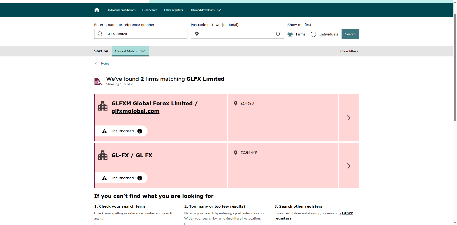 GLFX claims to be registered in the United Kingdom. However, upon checking the Financial Conduct Authority (FCA) register, we found no evidence that the company is authorized to conduct forex trading or any other regulated financial activities.