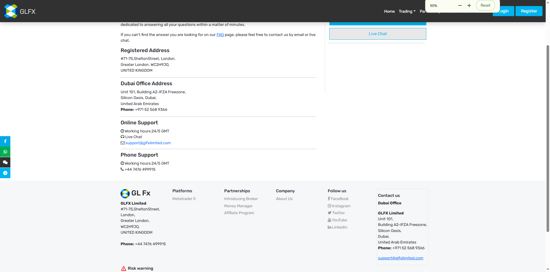GLFX also states it has an office in Dubai, United Arab Emirates. Despite this claim, we conducted thorough checks with both the UAE Securities and Commodities Authority (SCA) and the Dubai Financial Services Authority (DFSA). Unfortunately, no regulatory record of GLFX was found with either authority. This further strengthens our concern that the entity is operating without proper supervision in its jurisdiction as well.