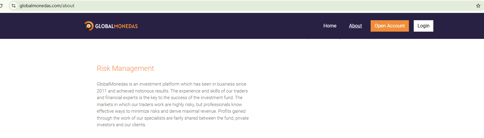 In essence, GLOBAL MONEDAS is not regulated by any governing body. Entrusting it with investors' funds is highly risky, as there are no legal protections in place to safeguard the funds.