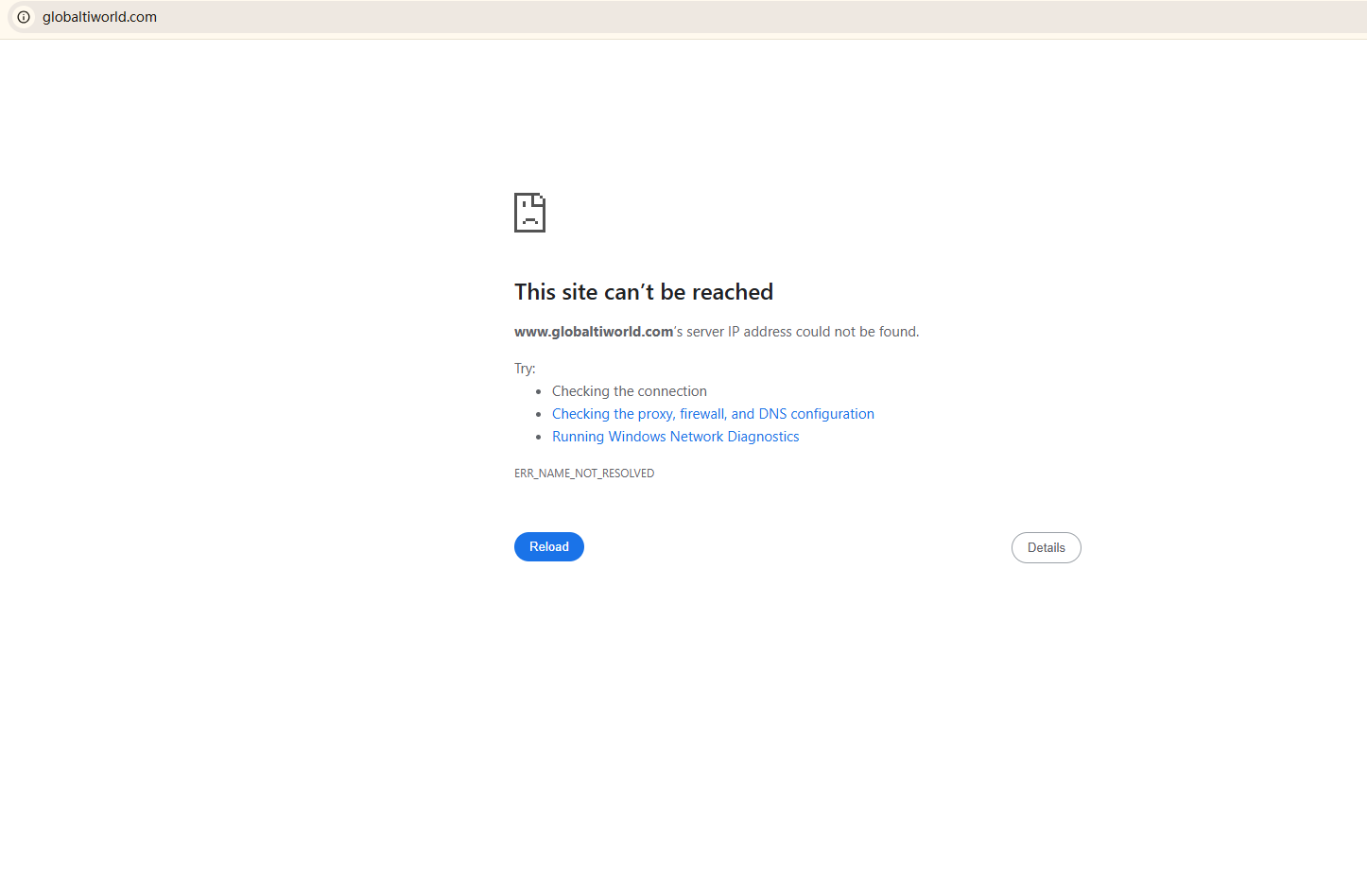 BrokersView found that the domain "https://www.globaltiworld.com/" is currently inaccessible. This is widely regarded as a significant red flag, as the suspension of a broker's website often points to underlying regulatory or operational issues.