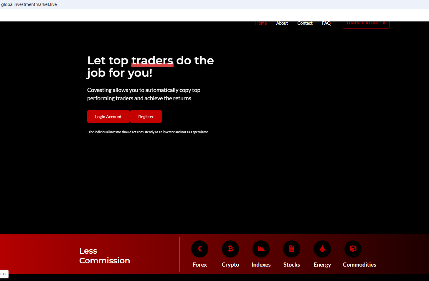 The website uses a common template for scam websites. They usually have the same website layout and wording and have been flagged by Brokersview many times before. The company claims to be located in the UK, but the funny thing is that the Financial Conduct Authority (FCA) issued a warning against Globalinvestmentmarket, believing this company might be providing financial services or products without proper authorization in the UK.