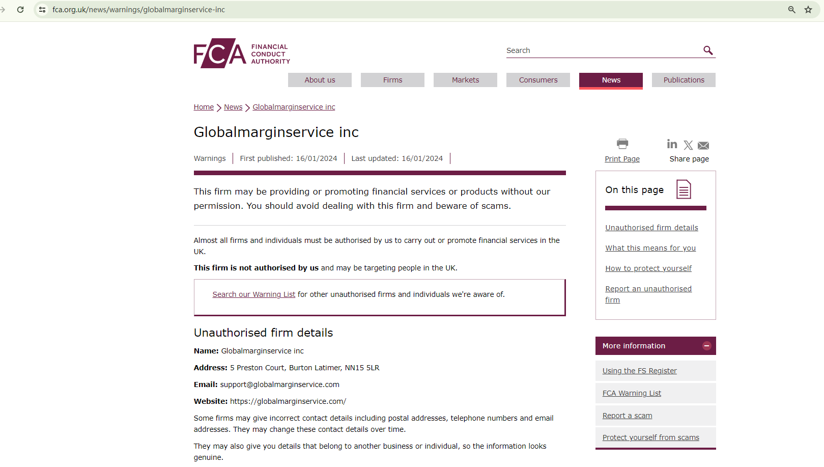 What's more, Globalmarginservice inc's unauthorized solicitation of British investors has prompted a warning from the Financial Conduct Authority (FCA).