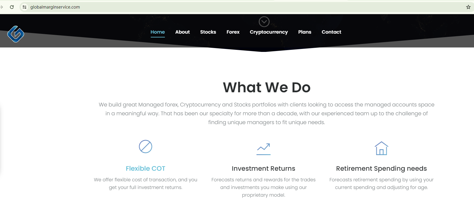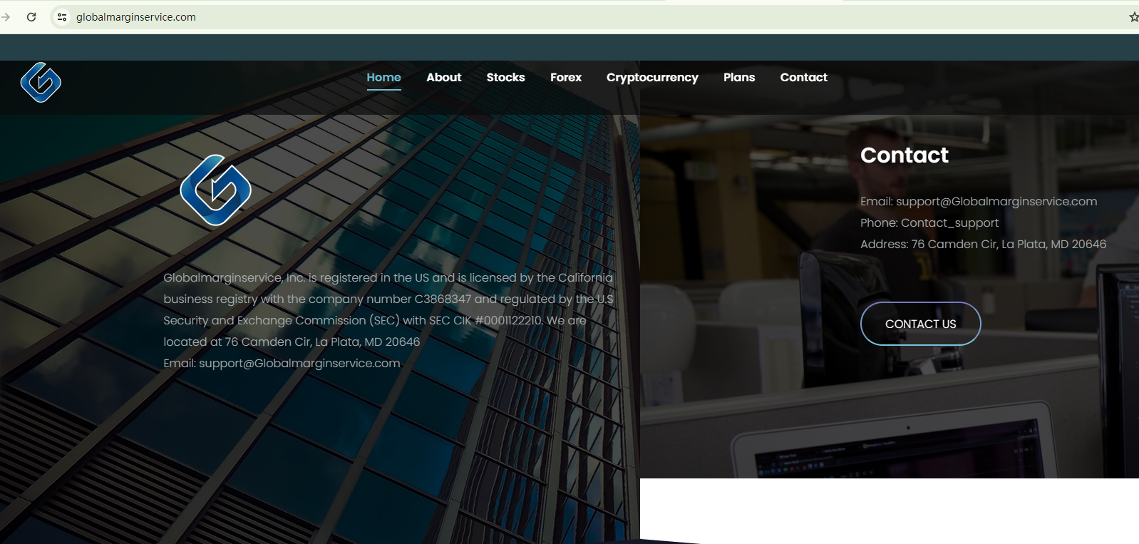Globalmarginservice inc claims to be an investment platform offering different portfolios. It alleges to be registered in the US, with a purported CIK #0001122210 in the US Securities and Exchange Commission (SEC) database.