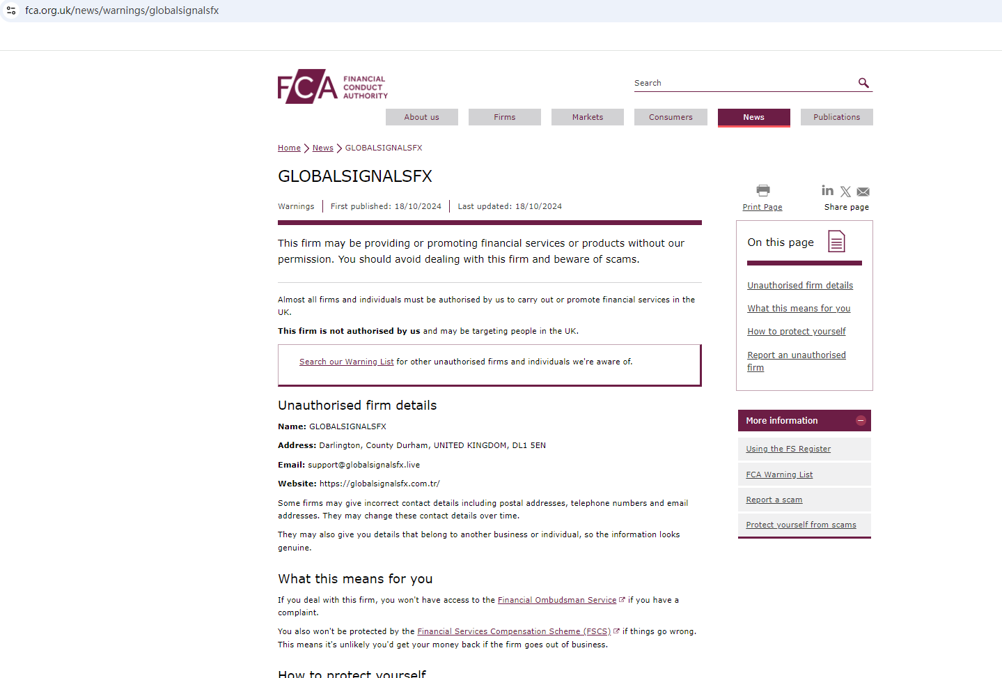 On 18th October 2024, the United Kingdom Financial Conduct Authority (FCA) issued a warning against GLOBALSIGNALSFX, believing this company might be providing financial services or products without authorisation in the UK. You may visit: https://www.fca.org.uk/news/warnings/globalsignalsfx