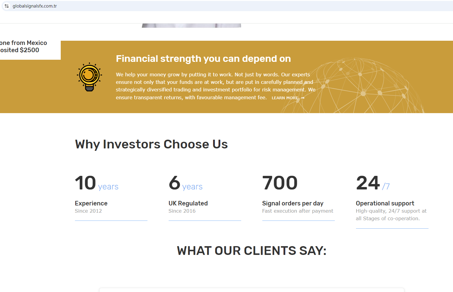 GLOBALSIGNALSFX appears to be a scam.
