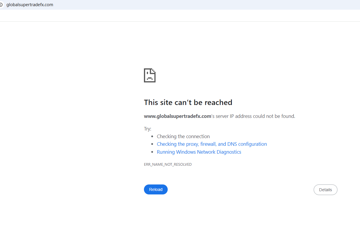 BrokersView found that the domain "https://www.globalsupertradefx.com/" is currently inaccessible. This is widely regarded as a significant red flag, as the suspension of a broker's website often points to underlying regulatory or operational issues.