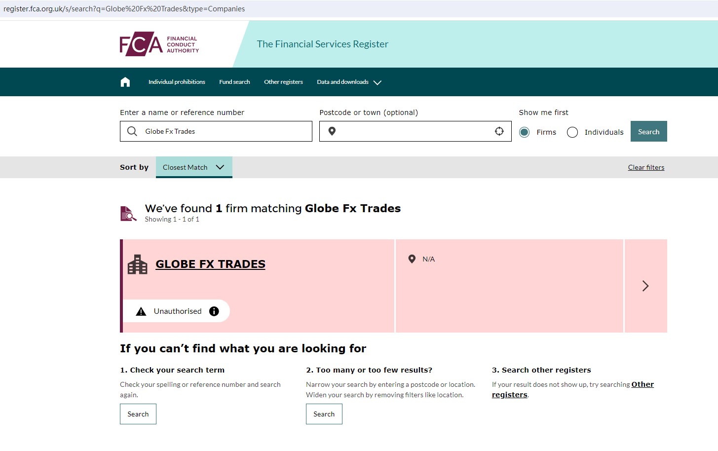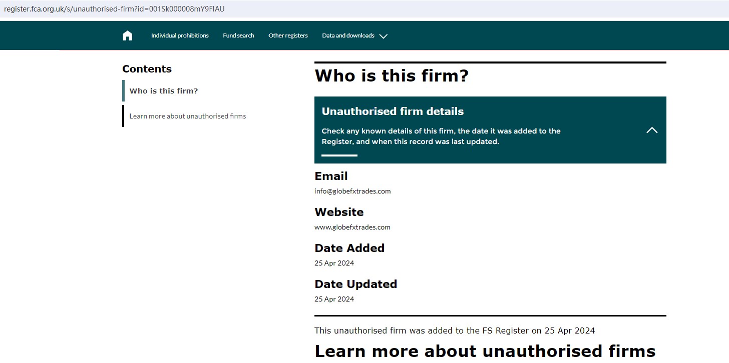 Our investigation has determined that Globe Fx Trades is not authorized by the FCA. Globe Fx Trades Global is also not regulated by the FSC.