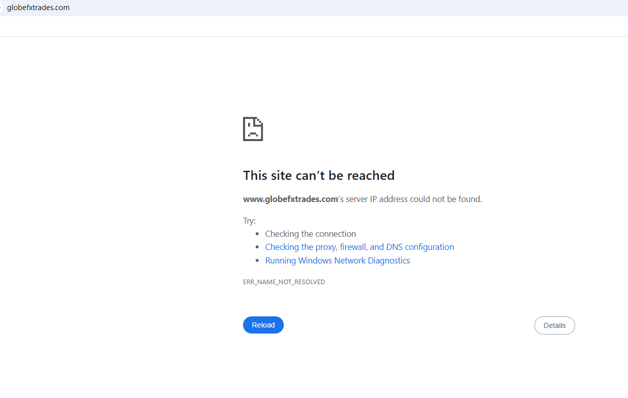 BrokersView has confirmed that the domain "https://www.globefxtrades.com/" is currently inaccessible. This is considered a serious red flag, as broker website closures often indicate fundamental regulatory or operational issues.