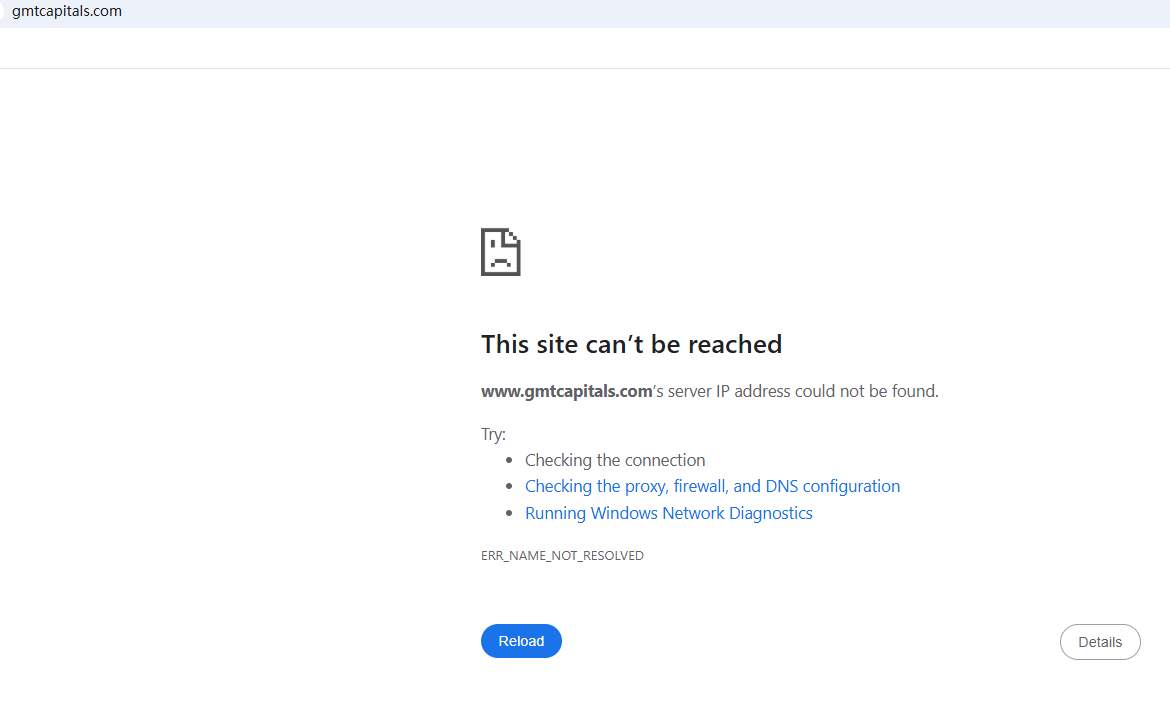 BrokersView found that the domains "https://www.gmtcapitals.com/; https://www.gmtplatform.com/; https://www.gmtdirect.com/" are currently inaccessible. This is widely regarded as a significant red flag, as the suspension of a broker's website often points to underlying regulatory or operational issues.