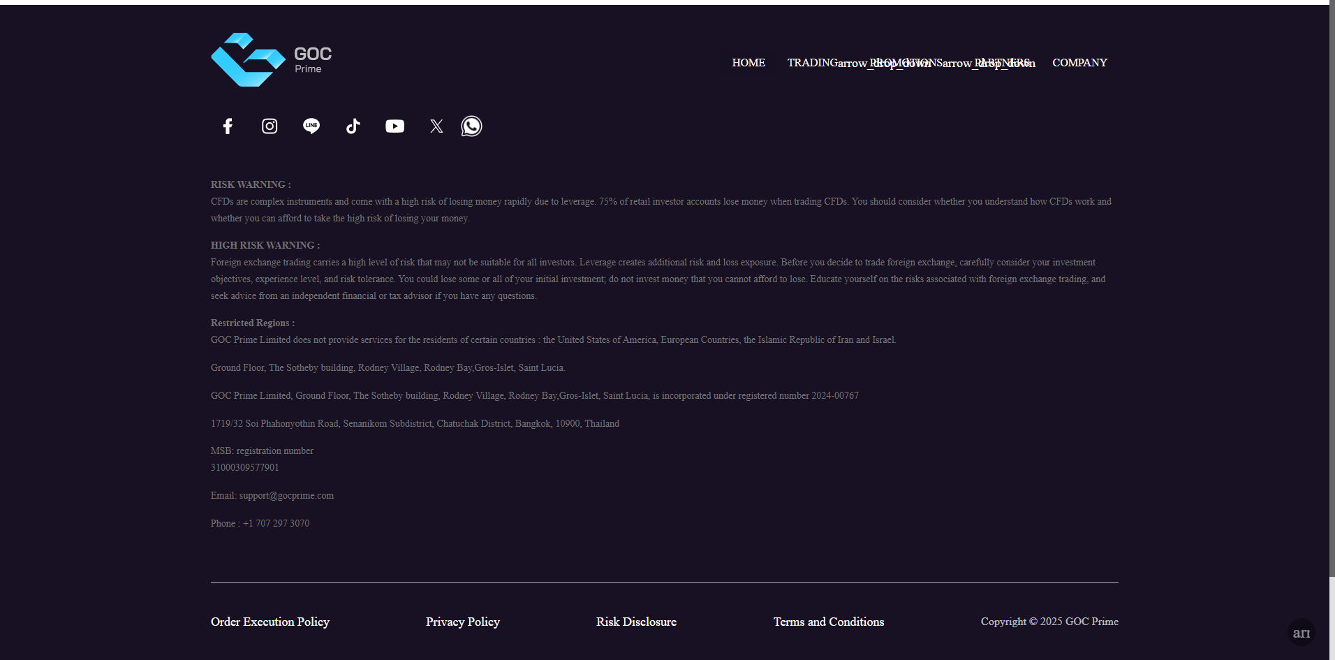 Goc Prime also claims registration in Thailand. However, Thailand has no regulatory body that licenses retail forex brokers. This means it is not authorized to offer trading services there, raising serious concerns about its legitimacy.