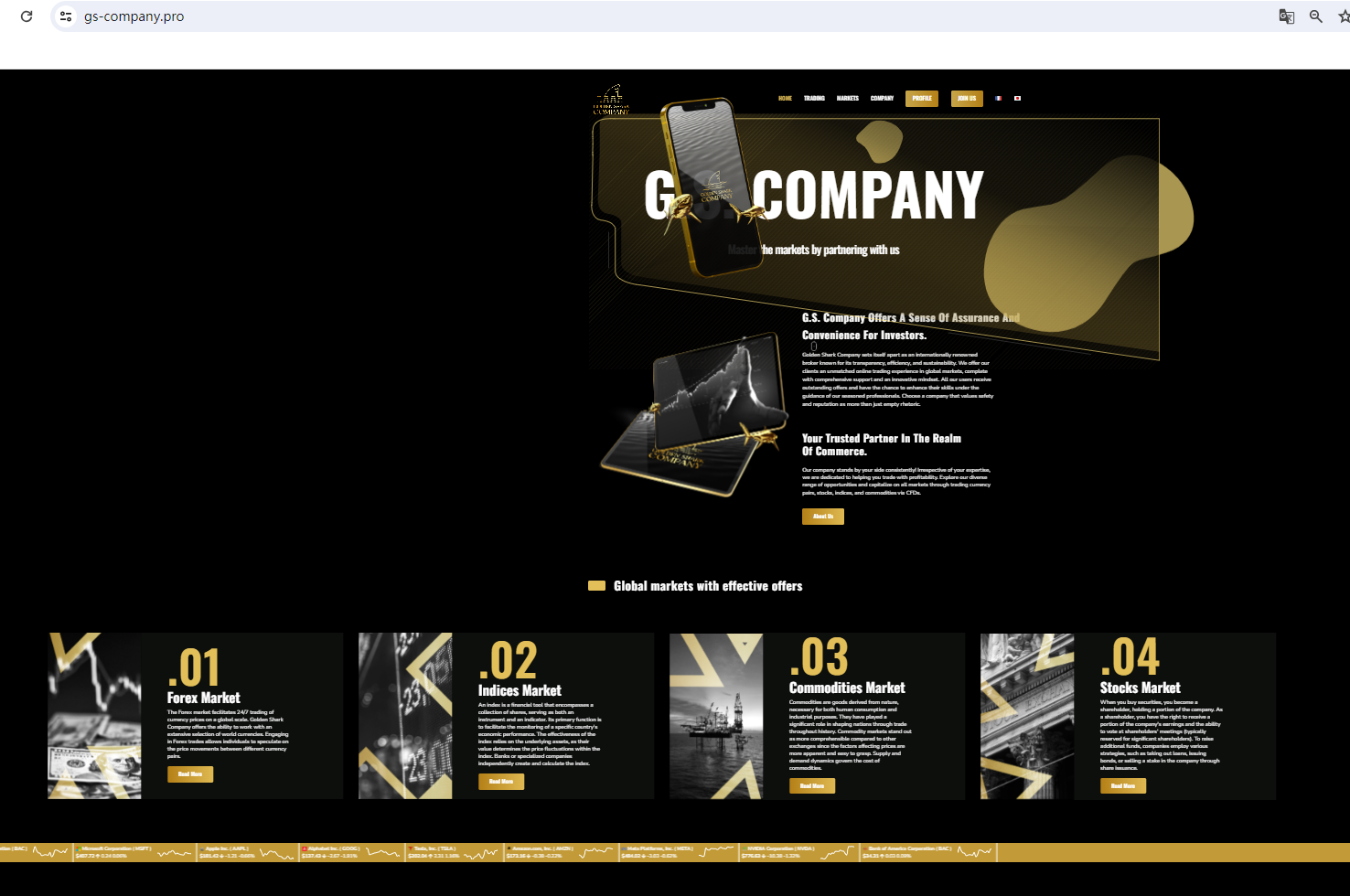 BrokersView found that the domain "https://gs-company.pro/" is currently inaccessible. This is widely regarded as a significant red flag, as the suspension of a broker's website often points to underlying regulatory or operational issues.