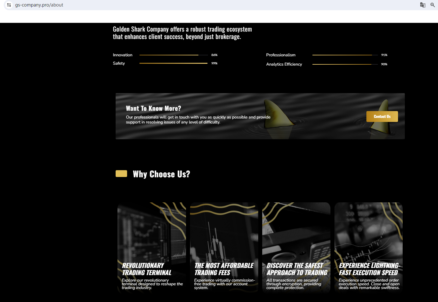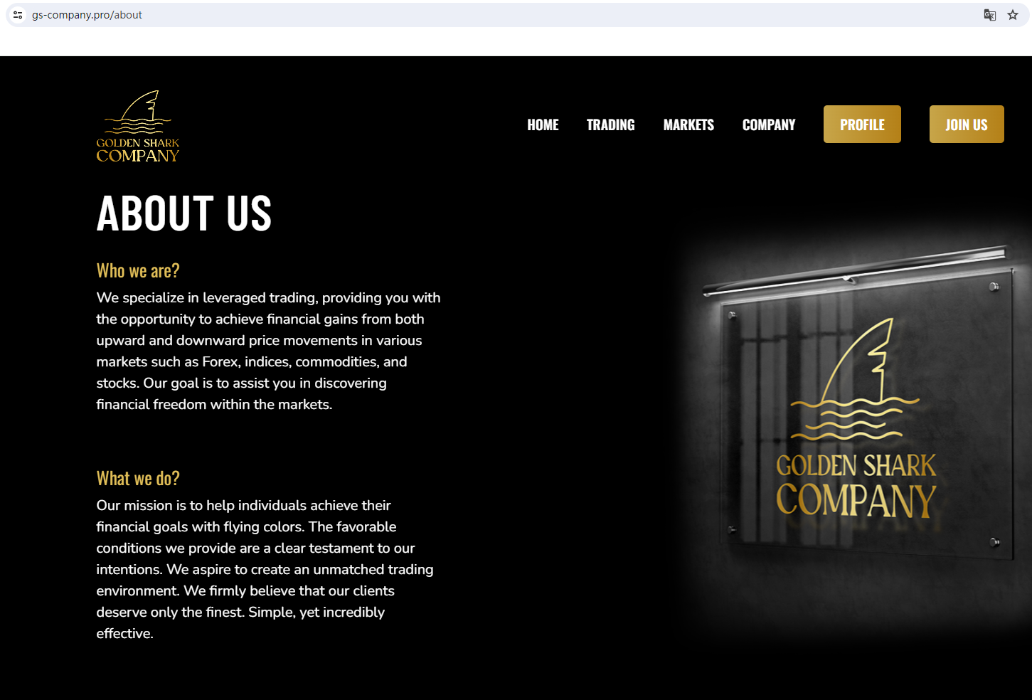 While Golden Shark Company claims to be a premier broker, it fails to provide the necessary licensing data or company profiles for investors to do due diligence. This lack of transparency is a significant scam indictor.