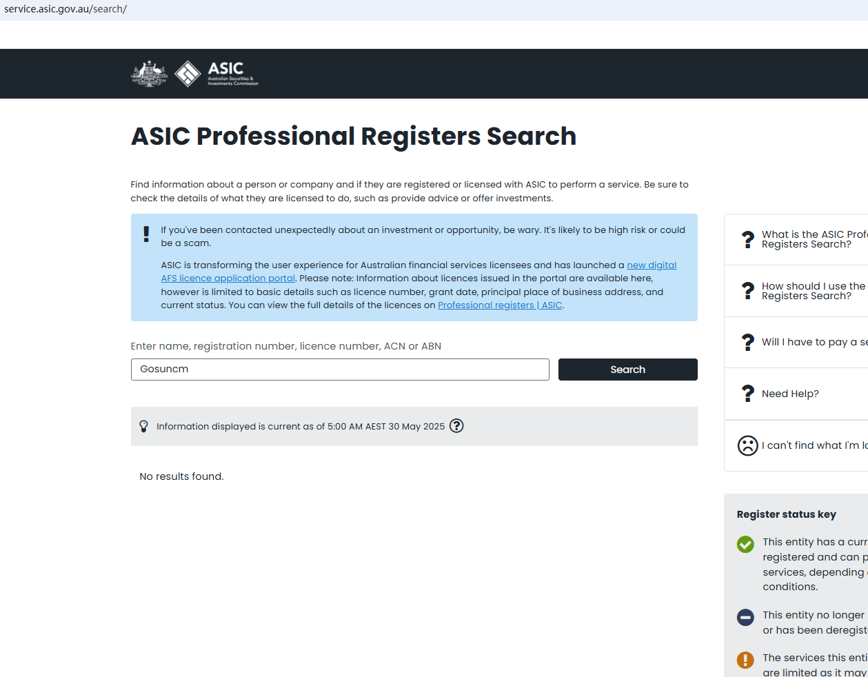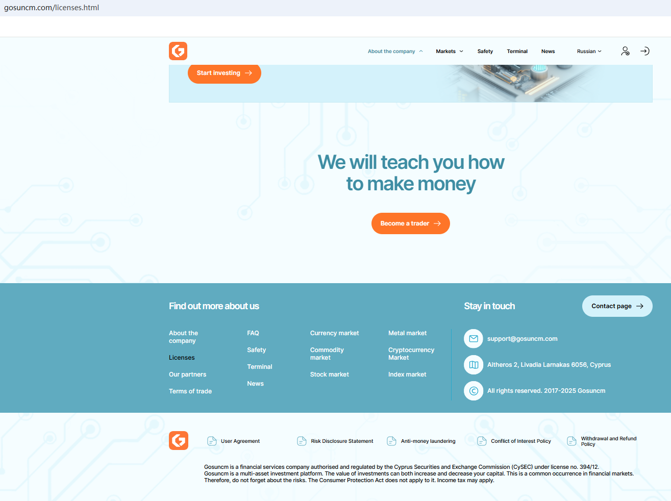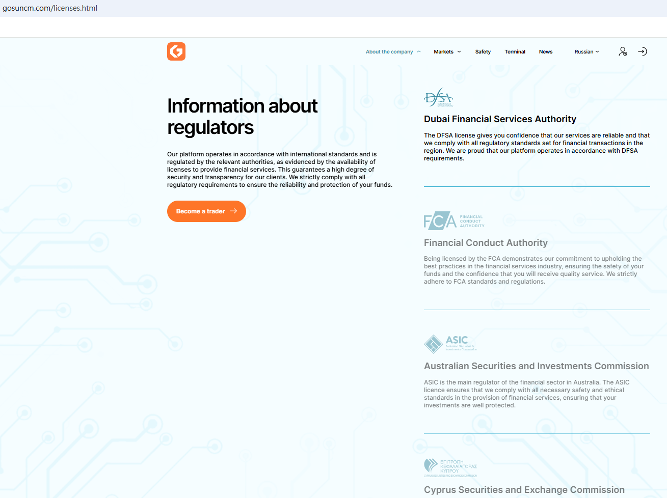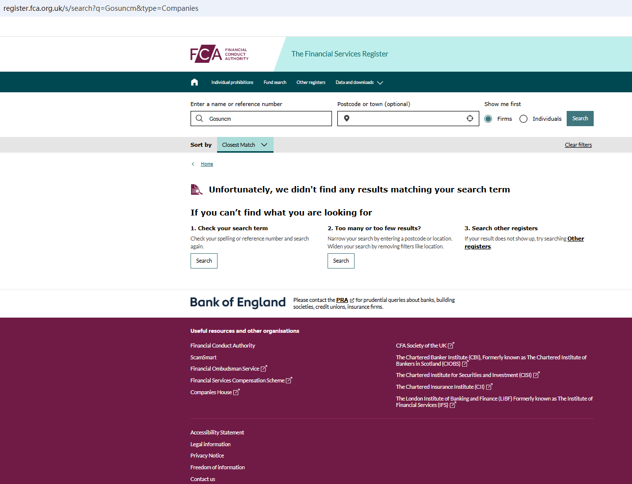 In addition, the Cyprus Securities and Exchange Commission (CySEC) issued a warning against Gosuncm, believing this company might be providing financial services or products without authorisation.