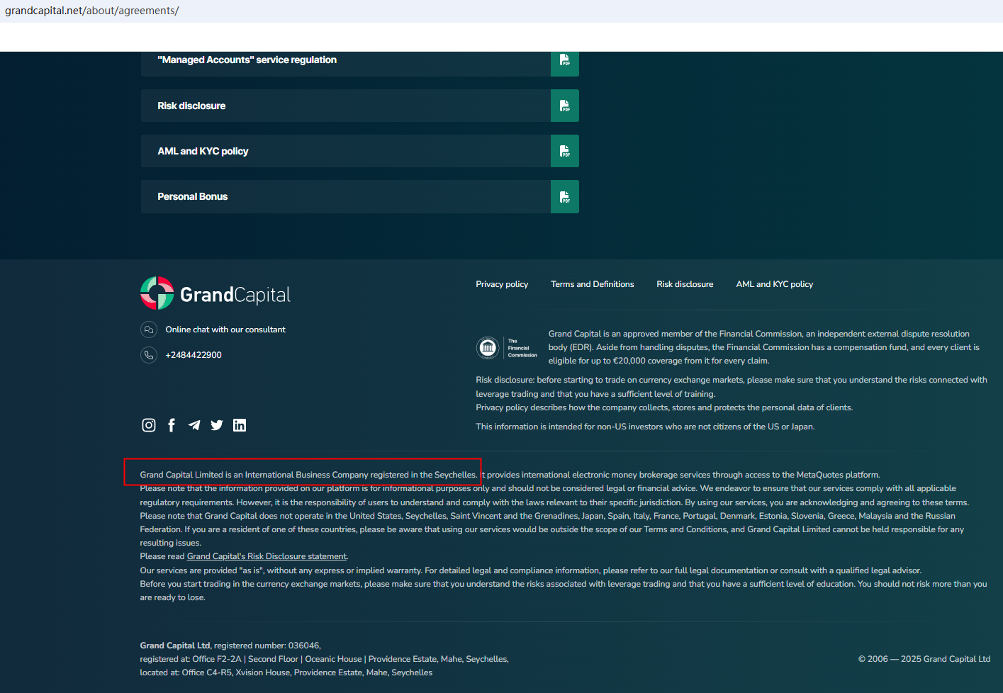 Grand Capital claims to be reliable and registered in Seychelles. But the funny thing is that Seychelles has issued a warning against it. In addition, it does not display any valid regulatory information on its website for inquiry, which is not trustworthy.