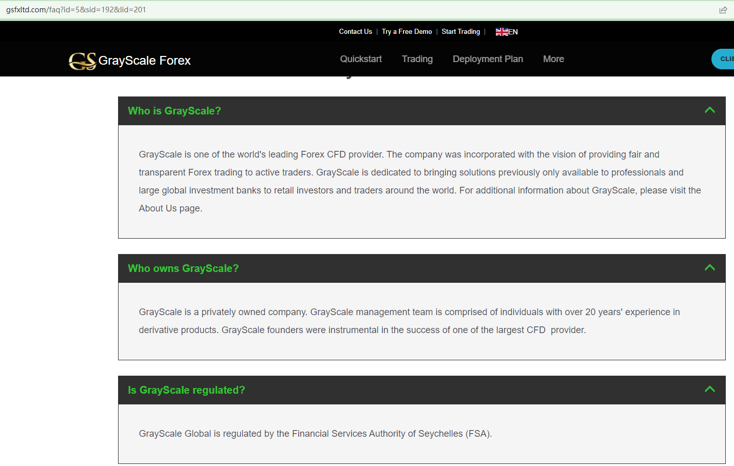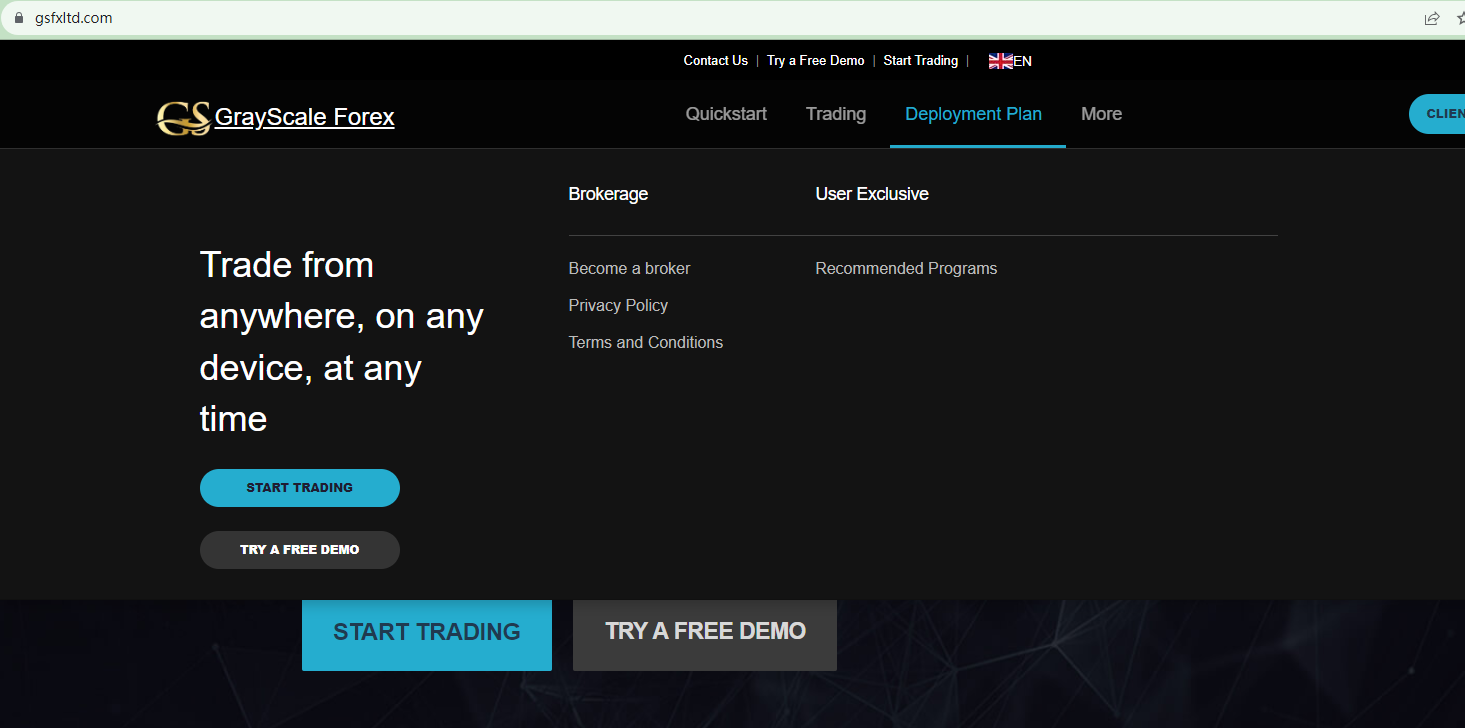GrayScale Forex uses a website design that is identical to another scam broker DBRS Morningstar's. The content including the regulatory information provided by this template is fake as a result.