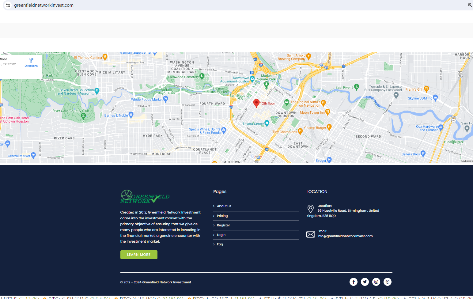 The website of Greenfield Network Investment appears to be identical to that of Fxmarkettrade, an unregulated broker that has previously been flagged by BrokersView.