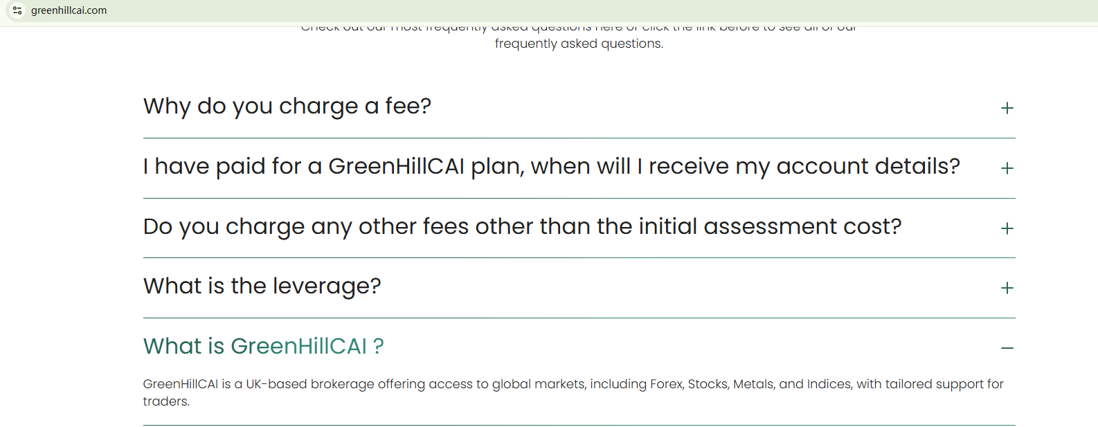 BrokersView found that the domain "https://greenhillcai.com/" is currently inaccessible. This is widely regarded as a significant red flag, as the suspension of a broker's website often points to underlying regulatory or operational issues.