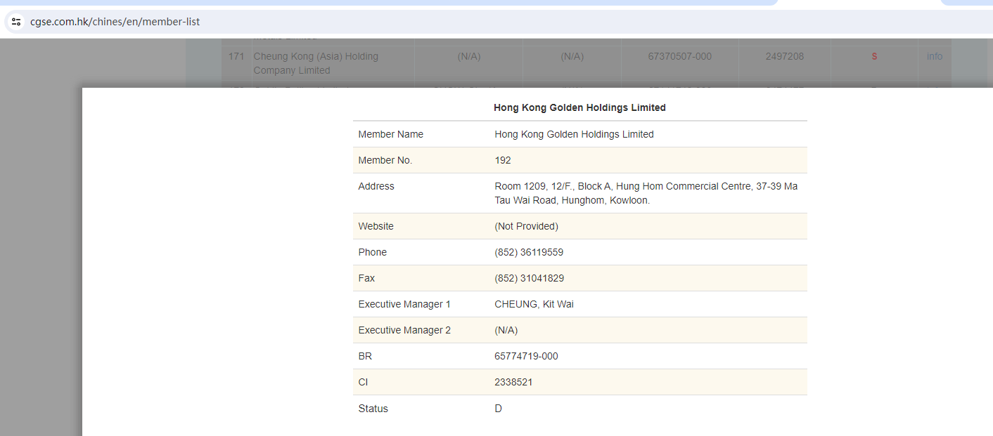 GSG Forex claims to be regulated by the Chinese Gold & Sliver Exchange Society (CGSE) (Member Number: 192). We searched by the member number 192 but found a mismatch for one company Hong Kong Golden Holdings Limited, when we searched by company name GSG International Limited there were no results.