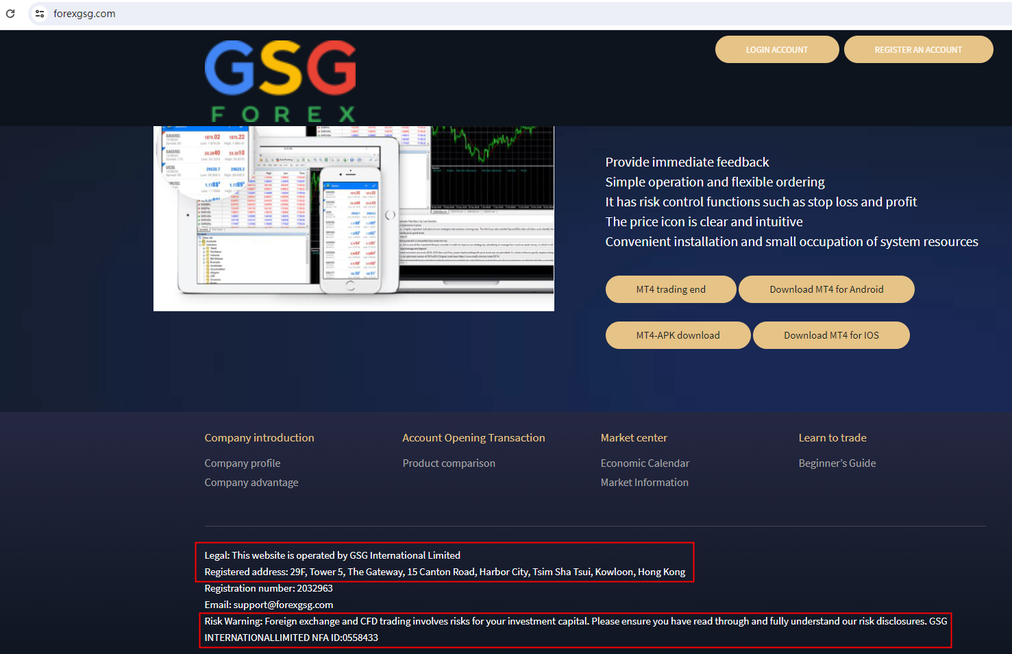 GSG Forex claims to be operated by GSG International Limited, which is registered in Hong Kong, but the HONG KONG Securities and Futures Commission (HK SFC) issued a warning that GSG International Limited/GSG Forex was providing financial services or products without authorisation.