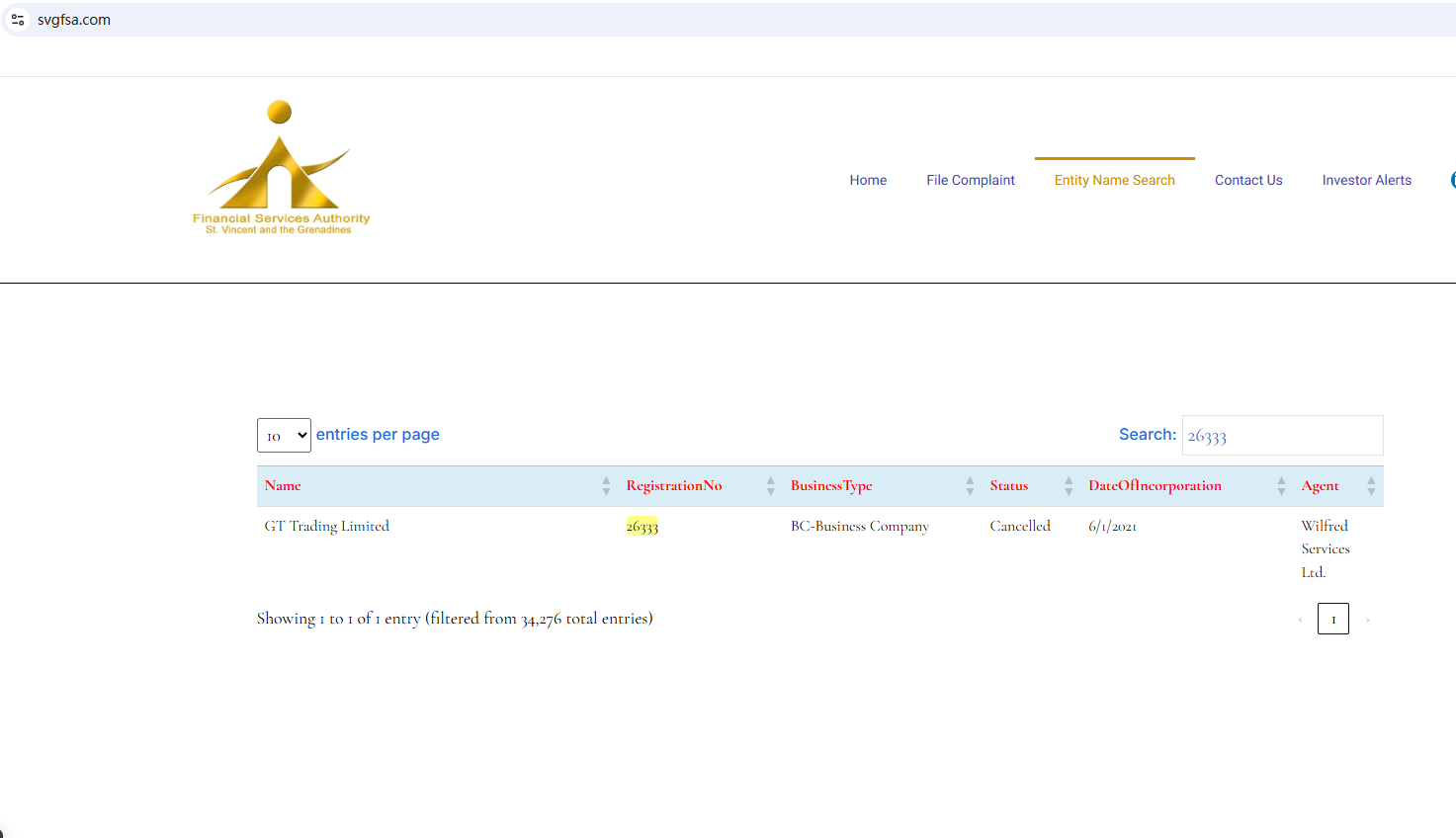 The website of GT Trading is currently unavailable. The claimed registration with the Financial Services Authority of St. Vincent and The Grenadines (SVG FSA) has been canceled as well. All the signs indicate substantial risks of GT Trading. Investors should be informed about the development and stay clear of it.