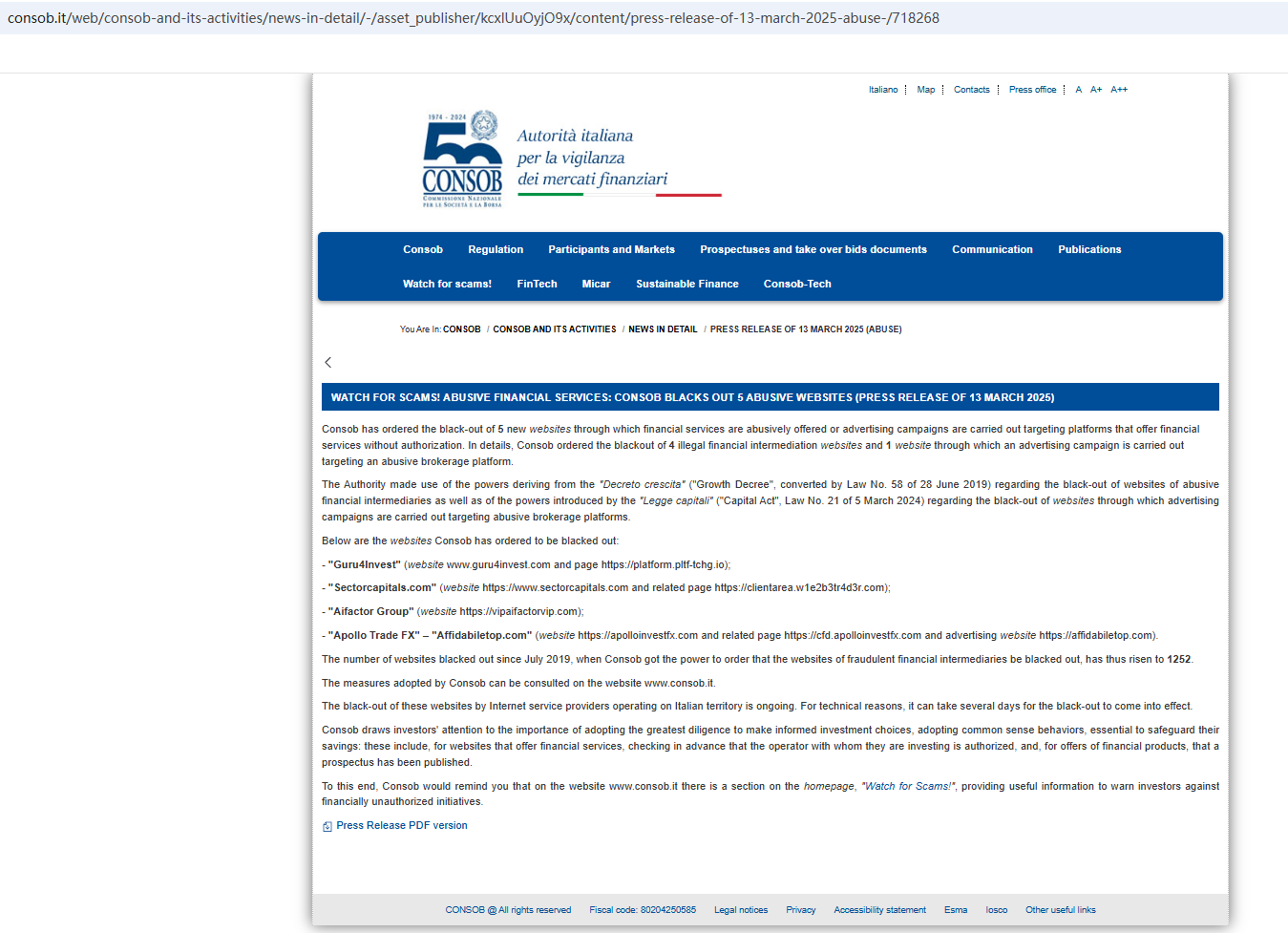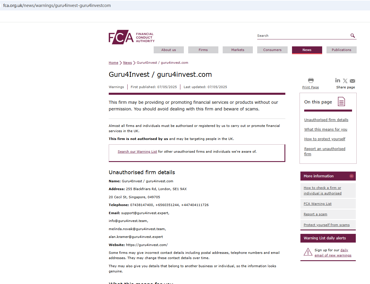 On March 13, 2025, the Italian Companies and Exchange Commission (CONSOB) ordered Guru4Invest to be blacked out since it offers financial services illegally in Italy. https://www.consob.it/web/consob-and-its-activities/news-in-detail/-/asset_publisher/kcxlUuOyjO9x/content/press-release-of-13-march-2025-abuse-/718268