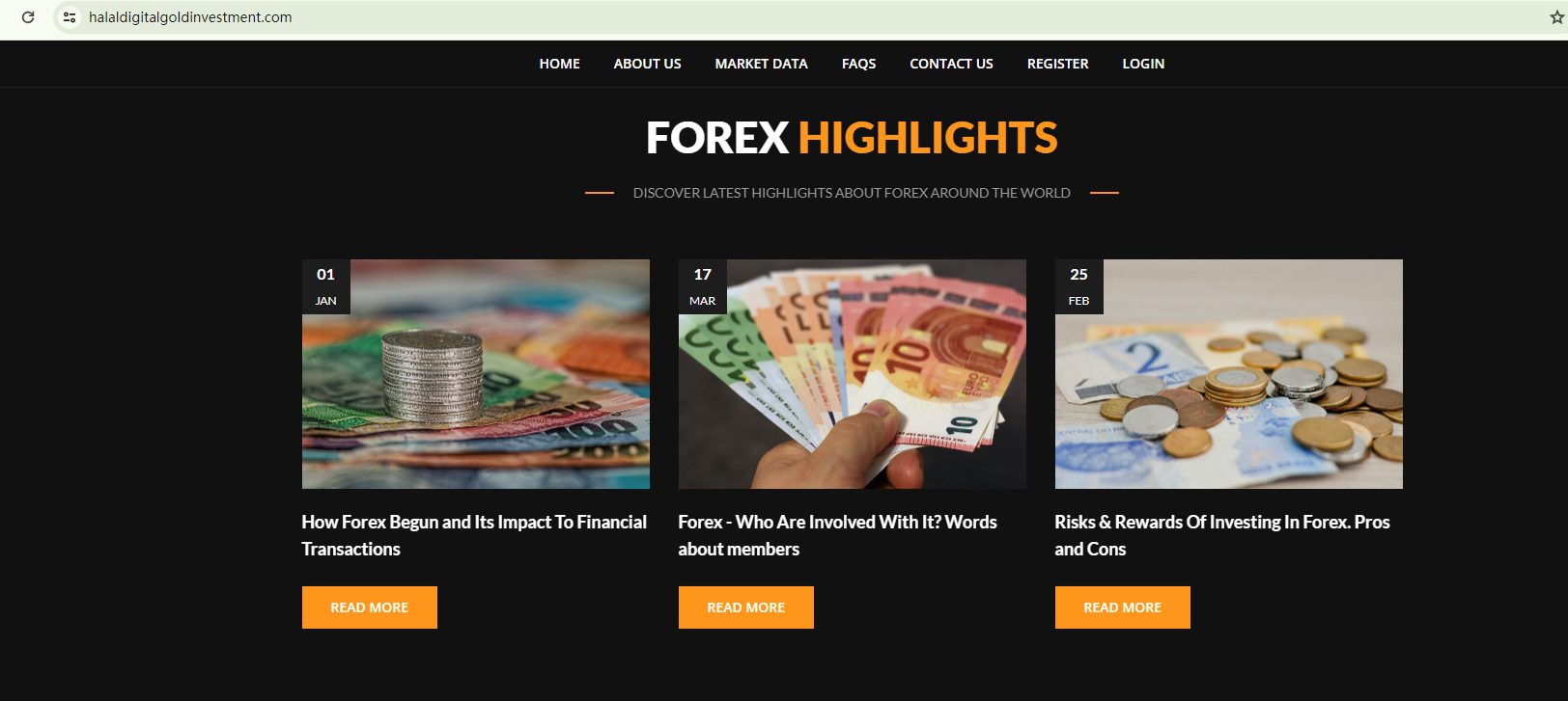 BrokersView found that the domain "halaldigitalgoldinvestment.com" is currently inaccessible. This is widely regarded as a significant red flag, as the suspension of a broker's website often points to underlying regulatory or operational issues.
