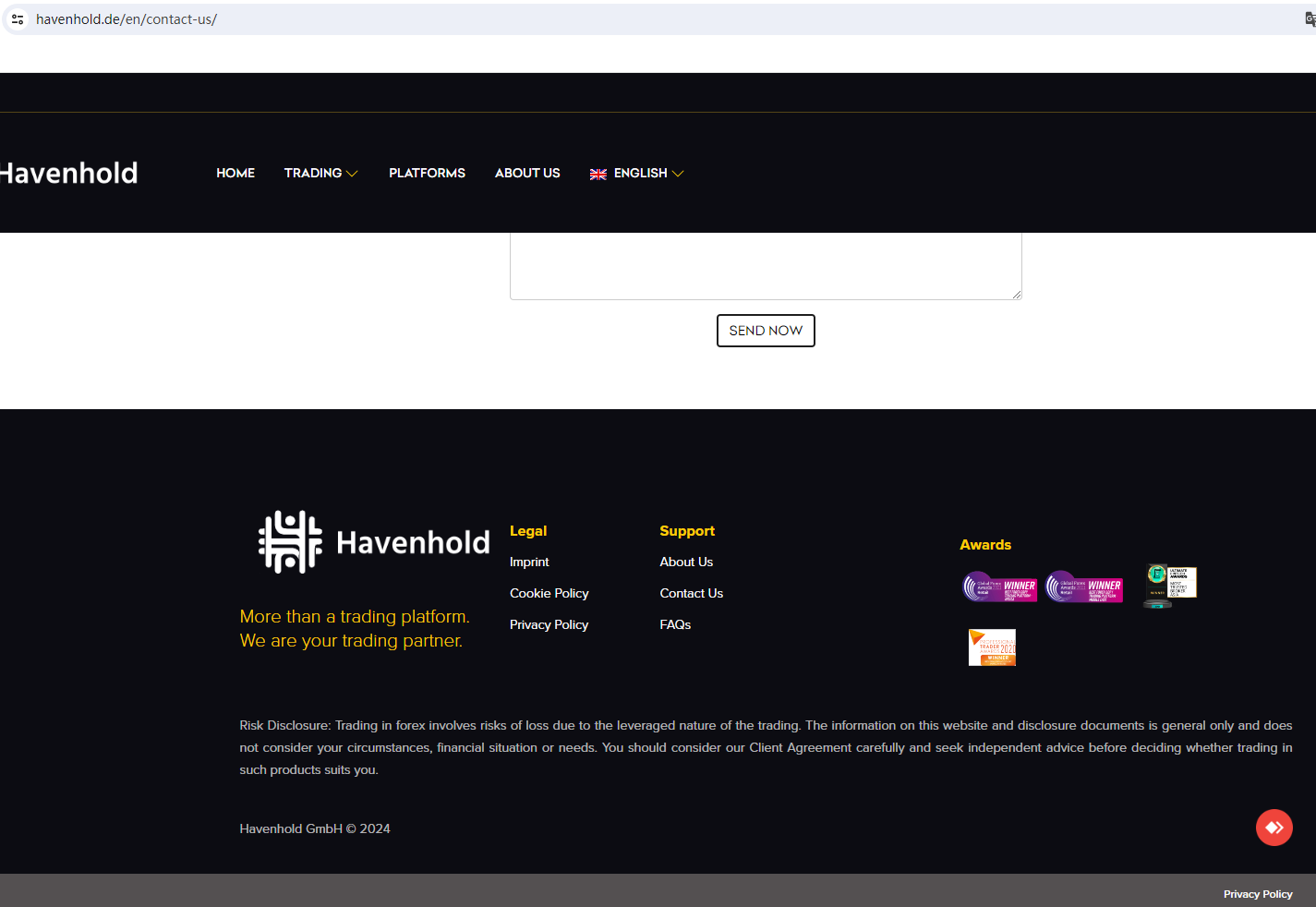 On 17 May, 2024, the Federal Financial Supervisory Authority (BaFin) warned consumers about the services offered by the company Havenhold/Havenhold GmbH, which is offering financial and investment services without the required authorization. https://www.bafin.de/SharedDocs/Veroeffentlichungen/EN/Verbrauchermitteilung/unerlaubte/2024/meldung_2024_05_17_Havenhold_GmbH_en.html;jsessionid=AC1F10D09592BD629196329383E5C03F.internet951