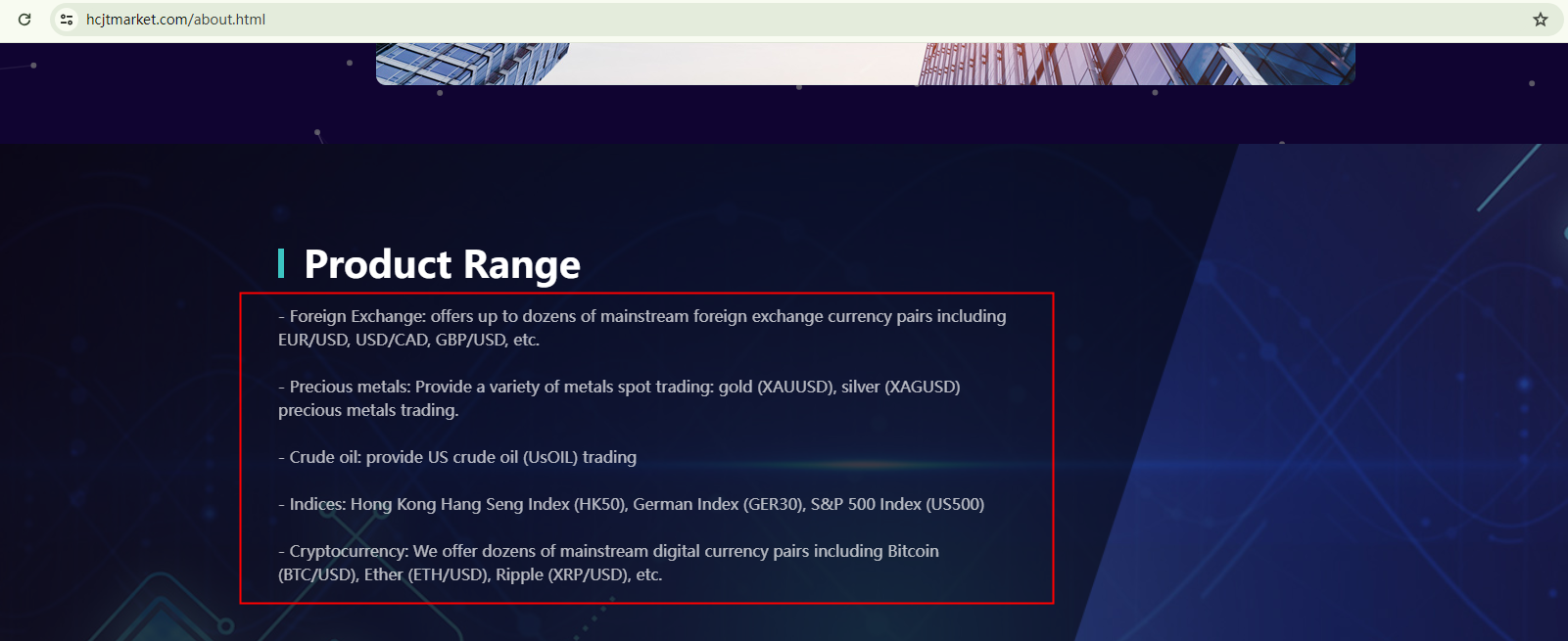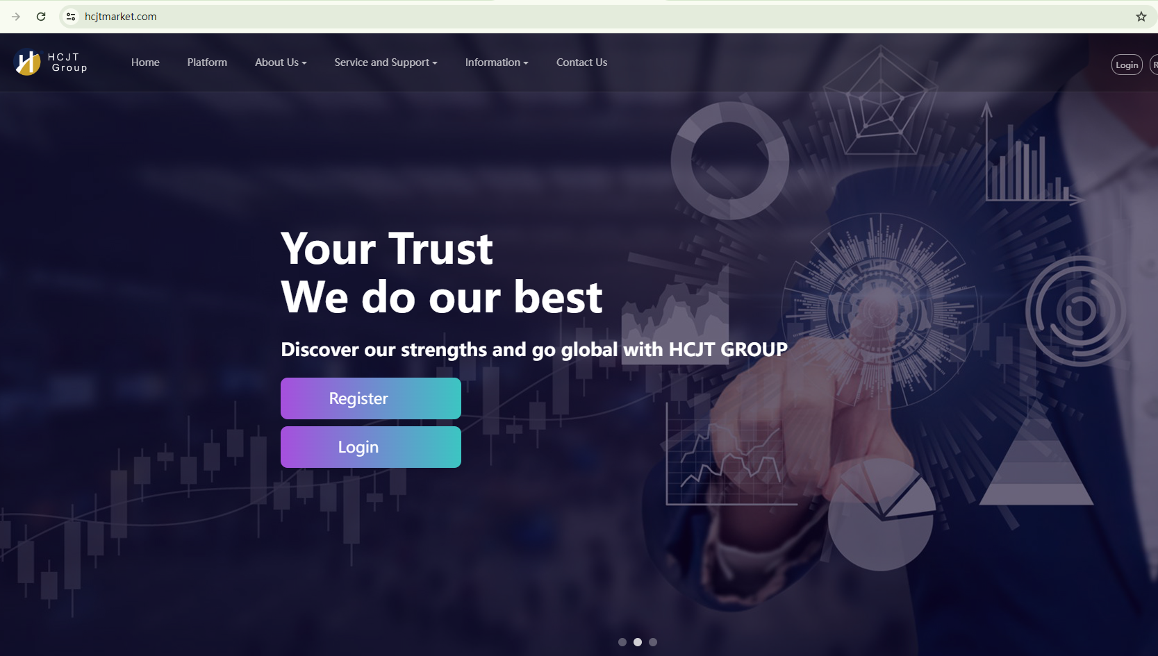 BrokersView found that the domain "https://hcjtmarket.com/; http://www.hcjtgroup.com/" is currently inaccessible. This is widely regarded as a significant red flag, as the suspension of a broker's website often points to underlying regulatory or operational issues.