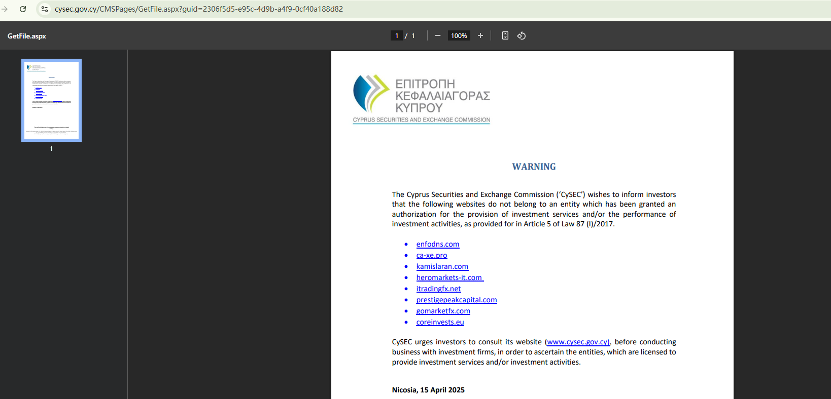 On April 15, 2025, the Cyprus Securities and Exchange Commission (CySEC) added HeroMarkets It to its warning list for carrying on unlicensed investment activities. https://www.cysec.gov.cy/CMSPages/GetFile.aspx?guid=2306f5d5-e95c-4d9b-a4f9-0cf40a188d82