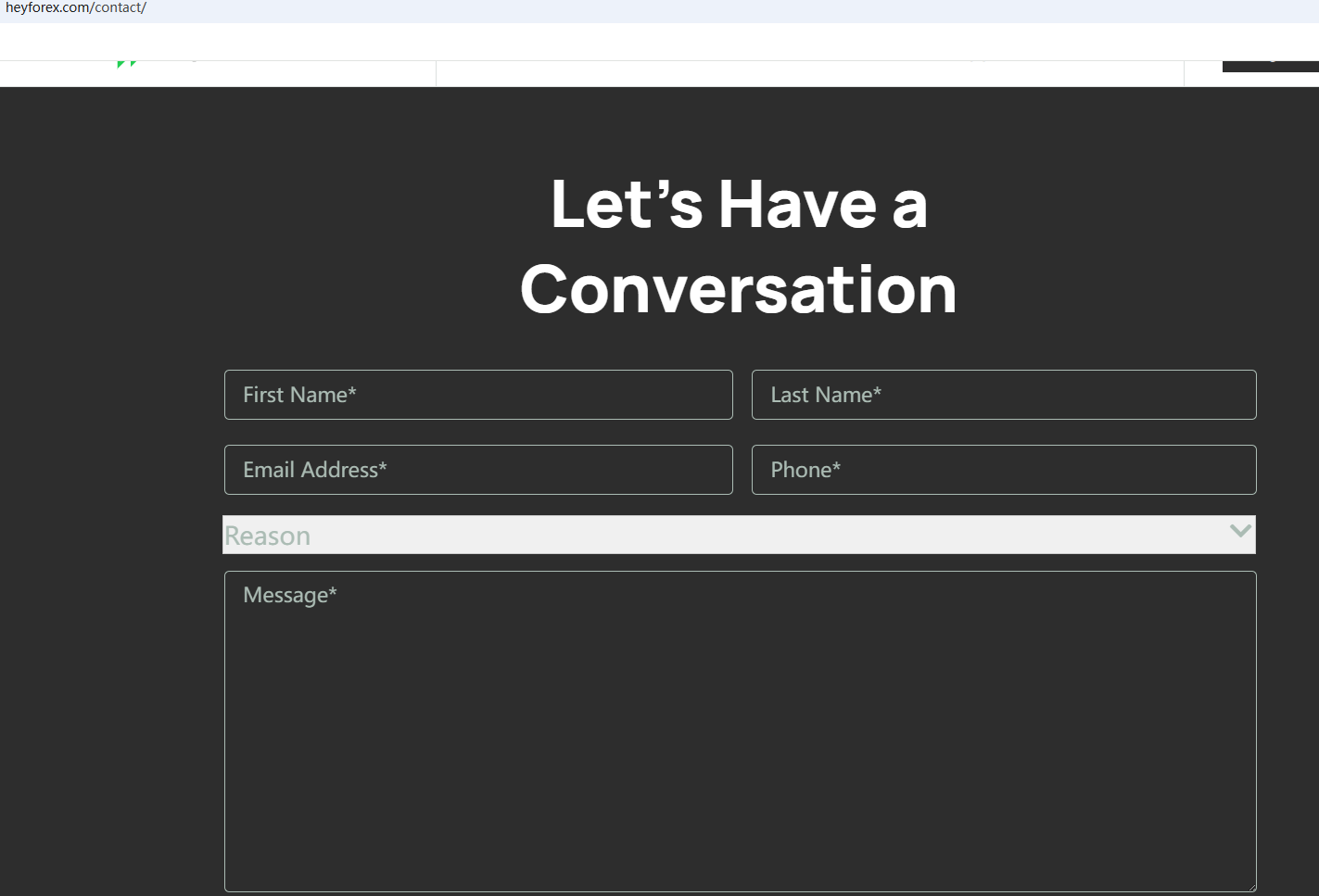 The company does not display any valid regulatory information or office address on its website. The previously claimed Financial Services Authority (SVG FSA) regulation status has been "Cancelled". All these signs indicate that Hey Forex faces significant risks. Investors should monitor developments and remain vigilant.