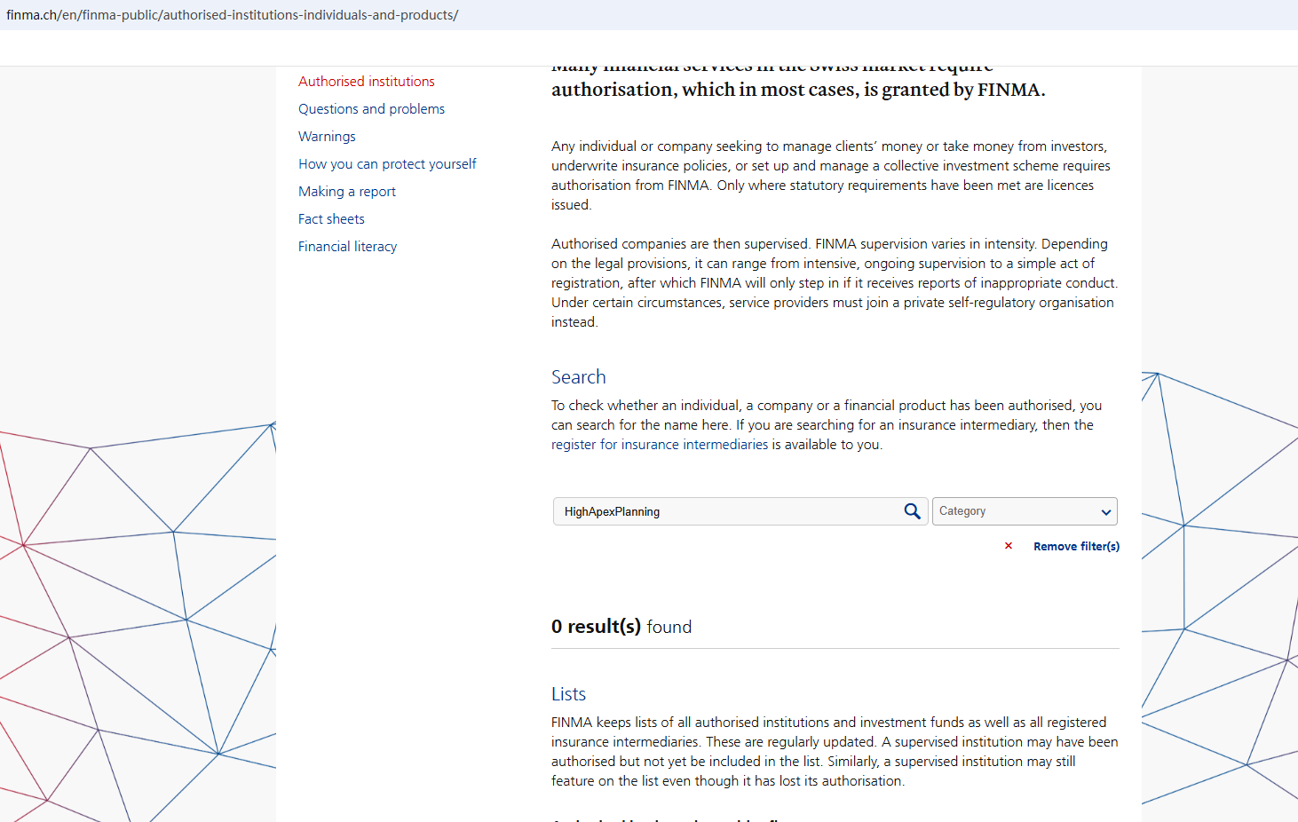 According to its website, it is located in Switzerland. Upon investigation, no matching information was found in the Swiss Financial Market Supervisory Authority (FINMA).