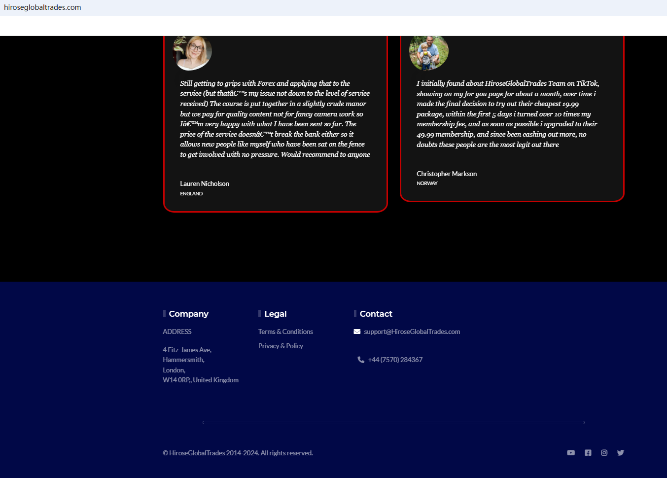 HIROSEGLOBALTRADES appears to be a scam.