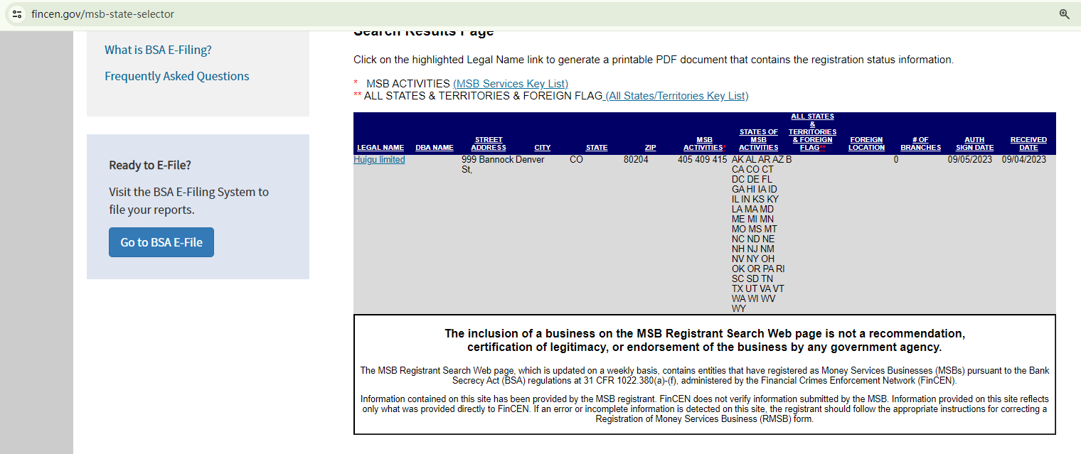 However, our comprehensive research indicates that its NFA ID serves merely for tracking purposes, and it is not under the NFA's jurisdiction due to its non-member status with the NFA. Regarding the MSB registration, as per the FinCEN, the listing of a business on the MSB Registration website does not constitute a recommendation, legitimacy certification, or endorsement of that business by any governmental agency.