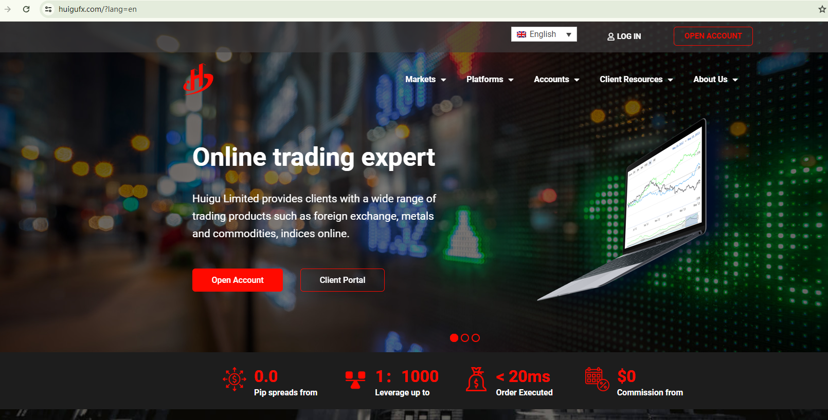 BrokersView found that the domain "https://huigufx.com/" is currently inaccessible. This is widely regarded as a significant red flag, as the suspension of a broker's website often points to underlying regulatory or operational issues.