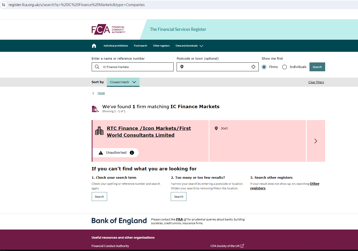 ICFM claims to be a reliable company without presenting any information about its regulation or contact. The lack of such important information may be a distinct signal of an unlicensed broker, as regulated companies always present their accreditations and licenses in a prominent position. It is a red flag. In addition, it is located in the UK. Upon investigation, no matching information was found in the Financial Conduct Authority (FCA).