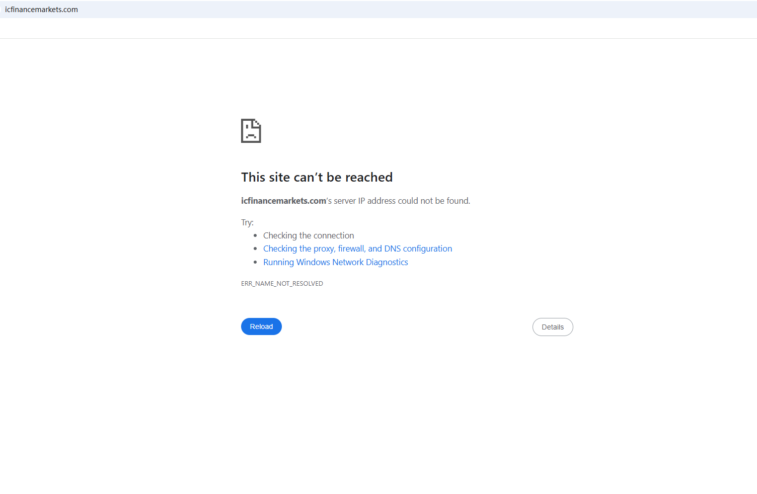 BrokersView found that the domain "icfinancemarkets.com" is currently inaccessible. This is widely regarded as a significant red flag, as the suspension of a broker's website often points to underlying regulatory or operational issues.