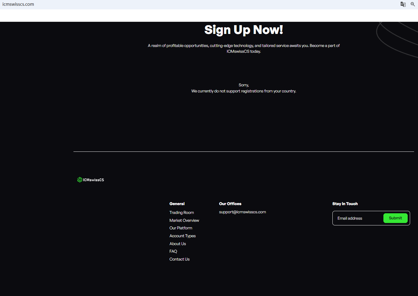 It claims to be a reliable company, but does not display any valid regulatory information on its website, and even the most basic office address is not disclosed. This is a very unreliable behavior, and investors are advised to be careful to distinguish it. In addition, the Financial Authority (Autorité des Marchés Financiers, AMF) added ICMswissCS to warning list for it being an unauthorized company engaging in forex activities.