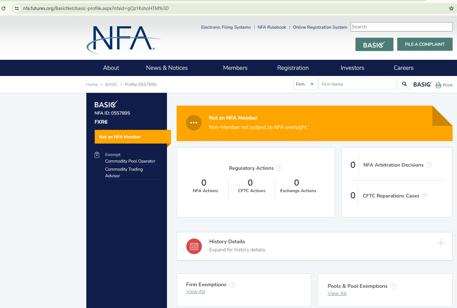 Furthermore, they display a certificate from the National Futures Association (NFA) to bolster their legitimacy claims. However, the NFA ID they provide appears to be for tracking purposes only, as the company is not an NFA member and is therefore not subject to the authority's oversight.